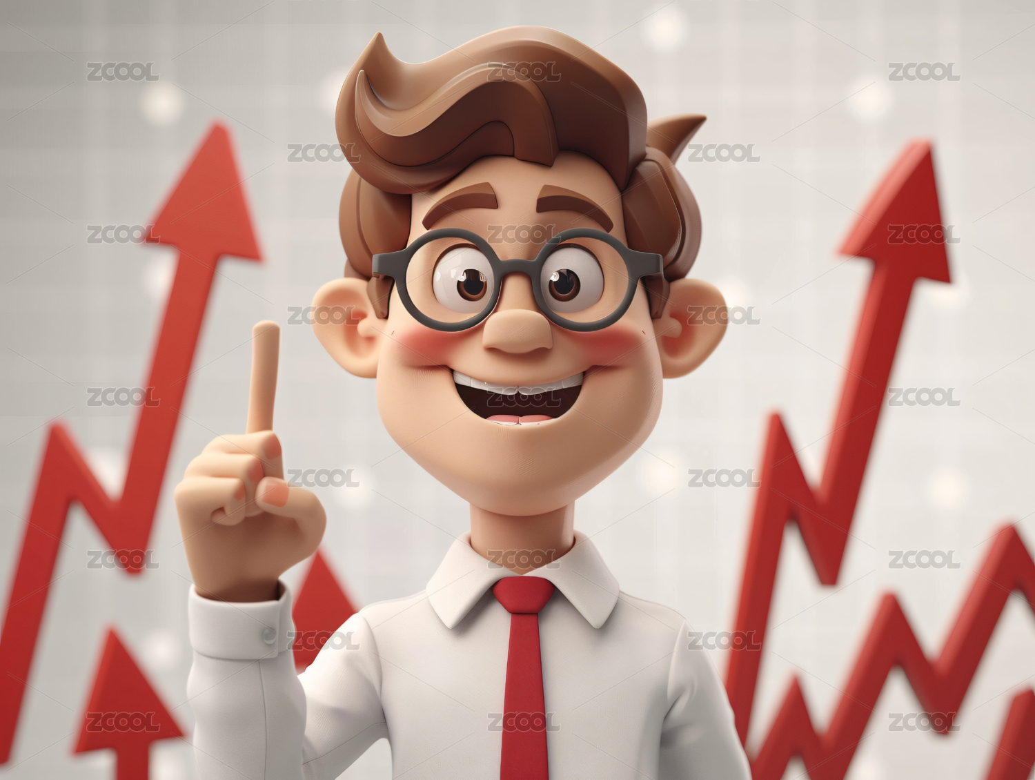 3D卡通金融男士手持红色增长箭头