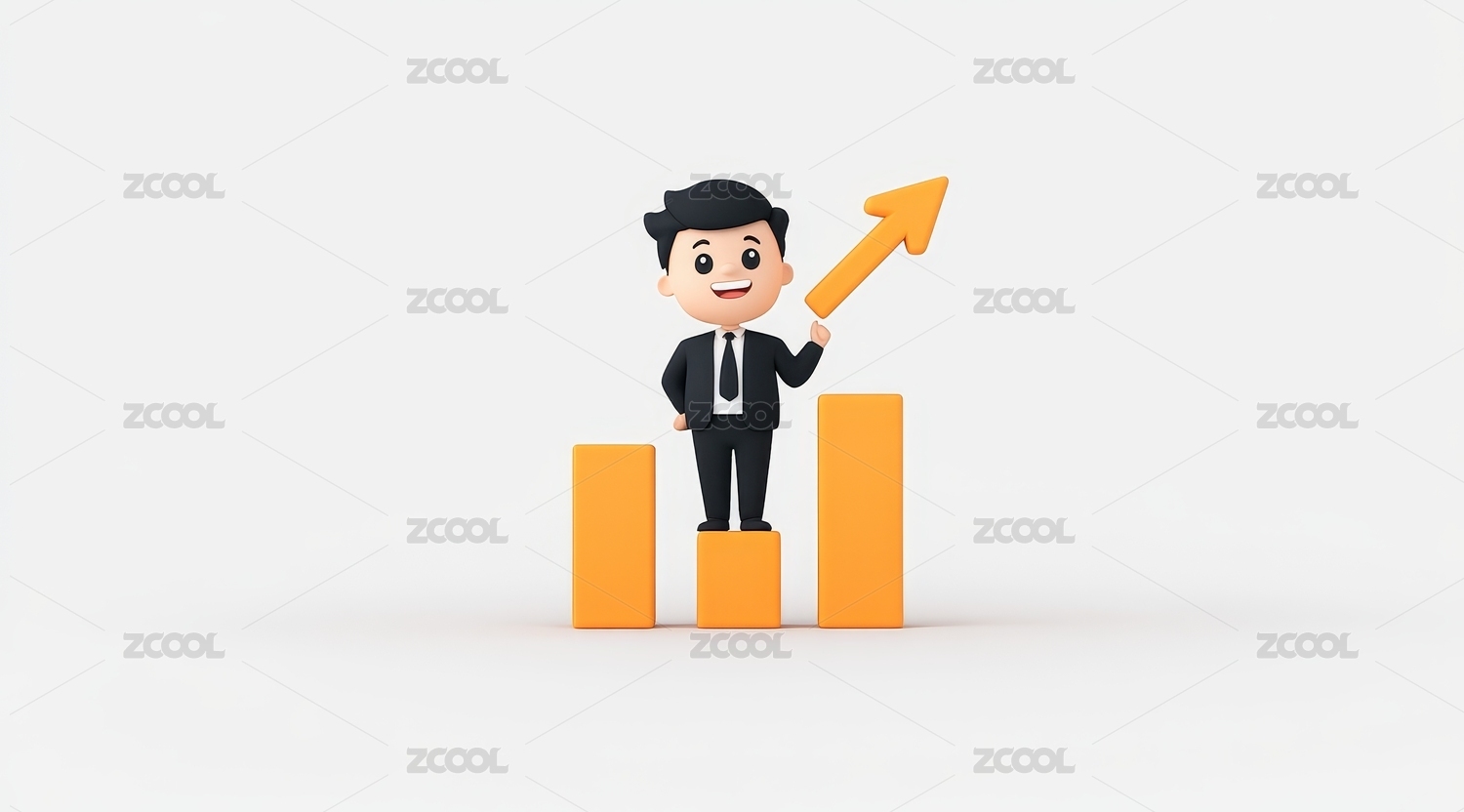 卡通人物商业图表上升