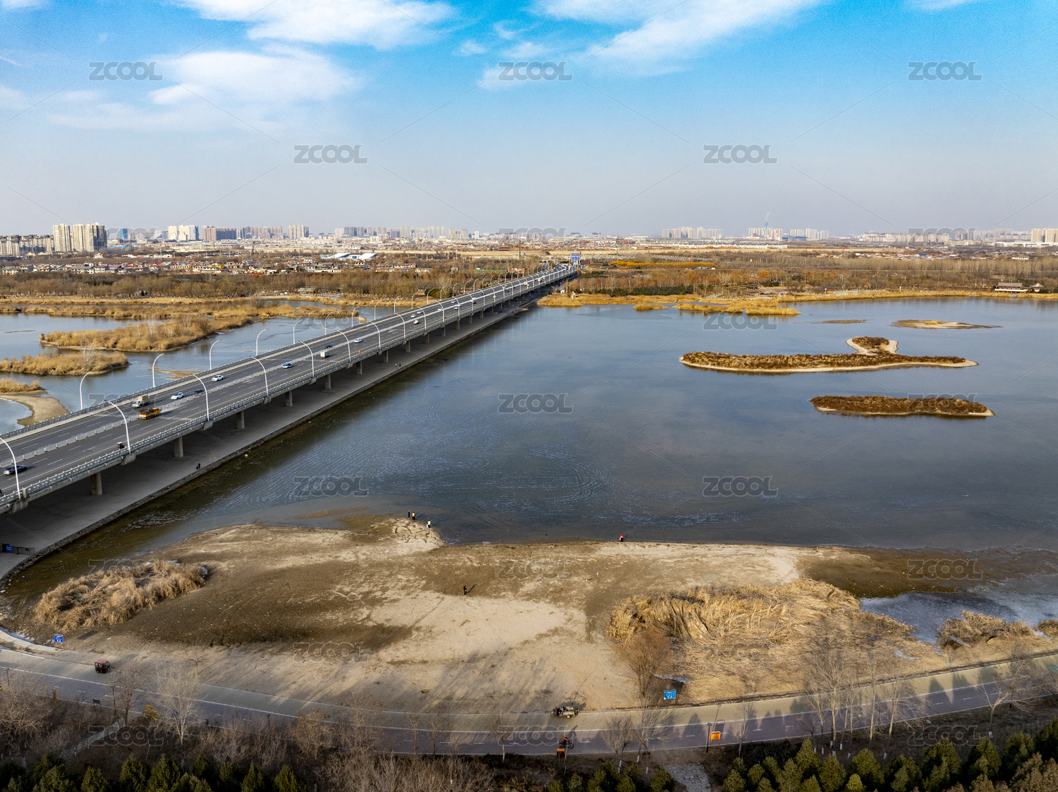 河北省石家庄市复兴大街滹沱河大桥航拍图片
