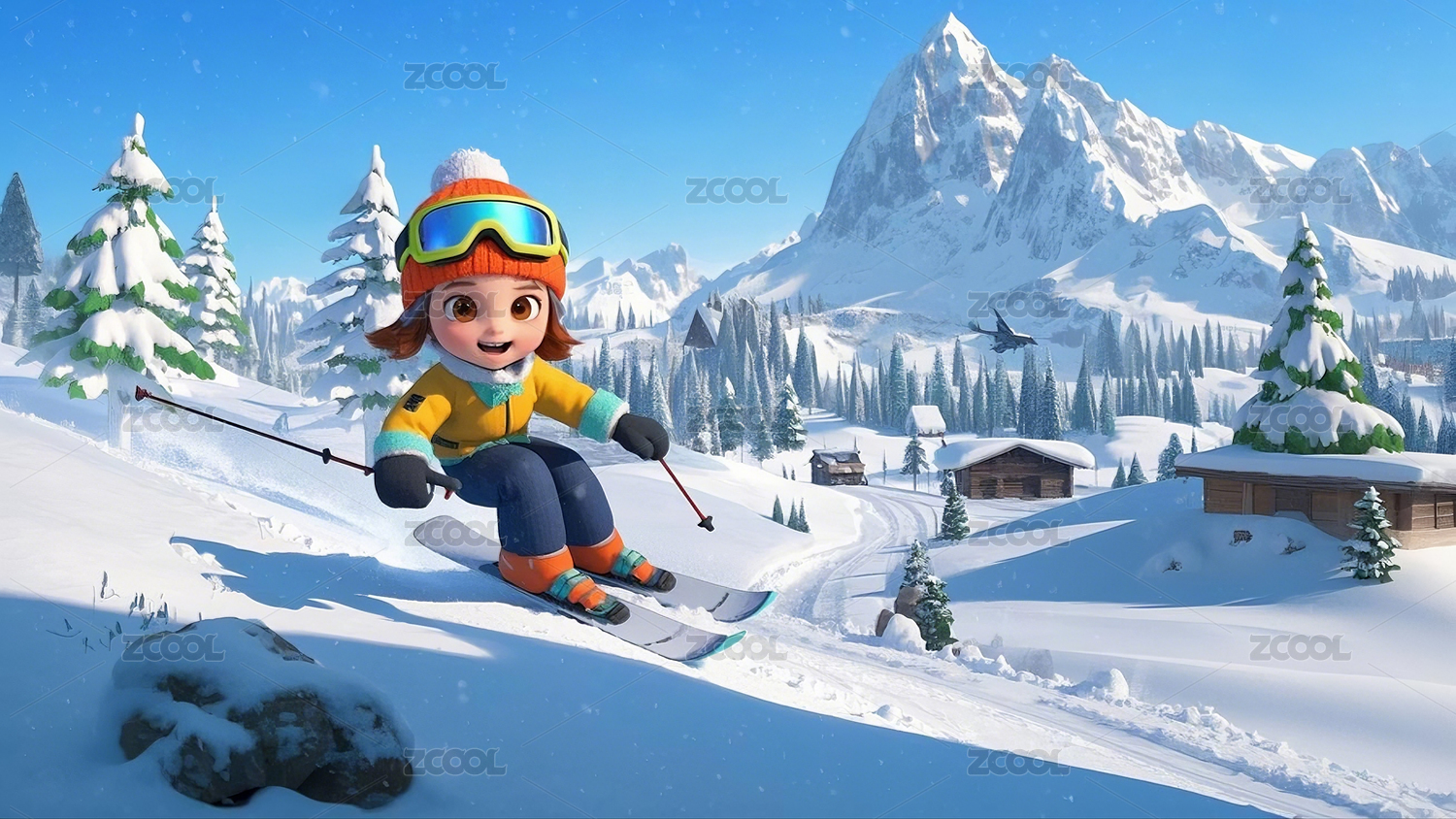 滑雪少女在梦幻节日氛围中展现灵动姿态