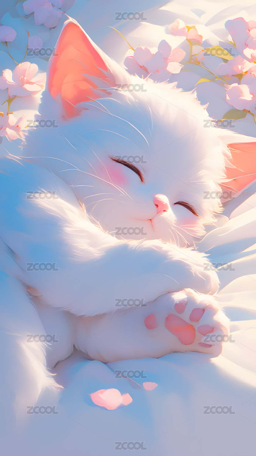 可爱白猫与粉色玫瑰