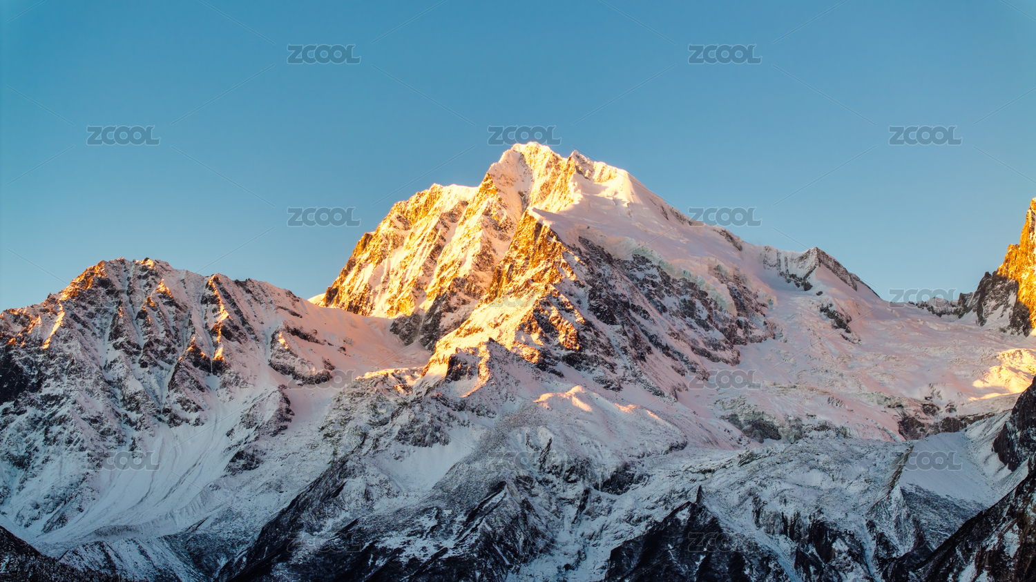 川西甘孜海螺沟景区金银山与三连峰日照金山