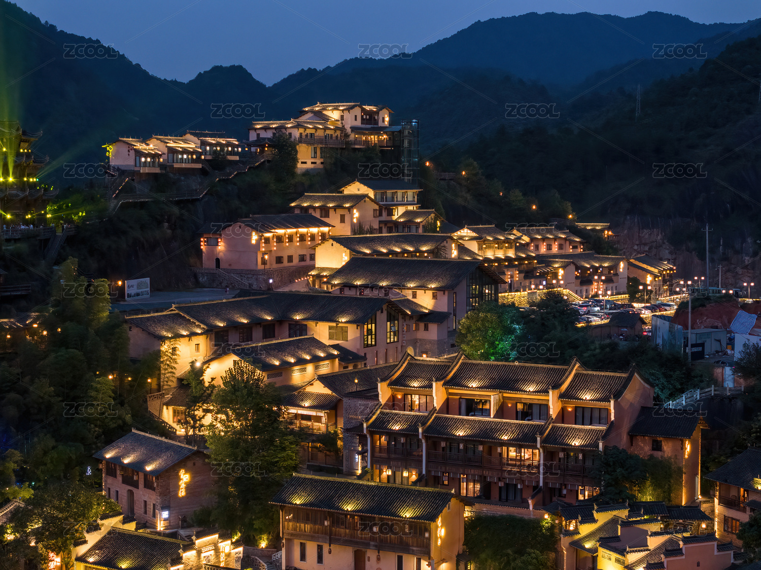 江西上饶网红景点望仙谷云雾蓝调灯光航拍