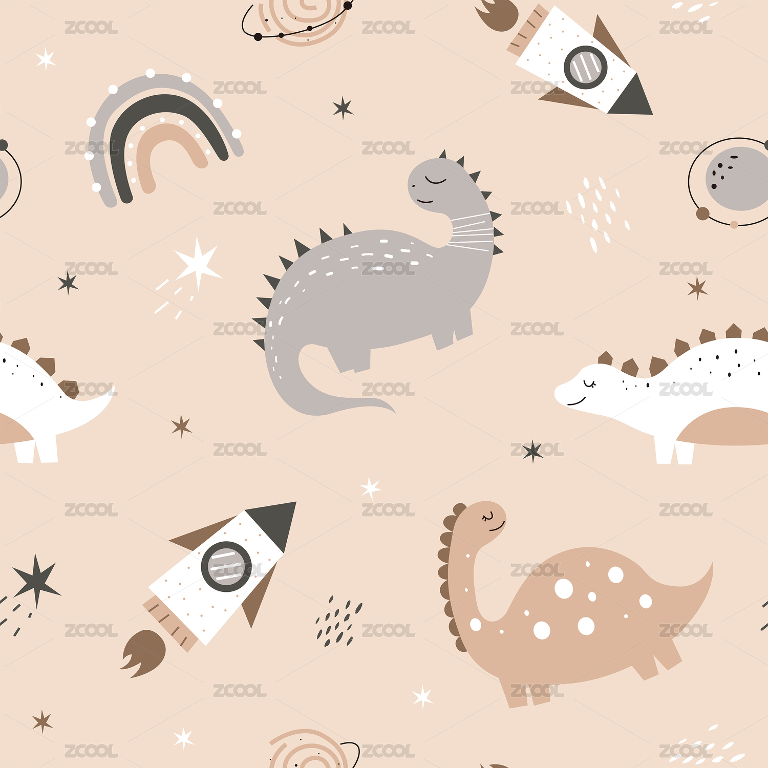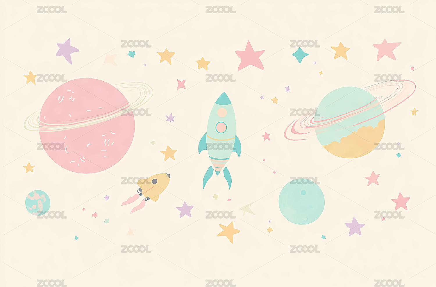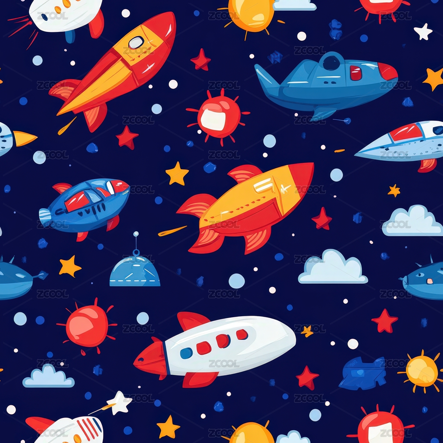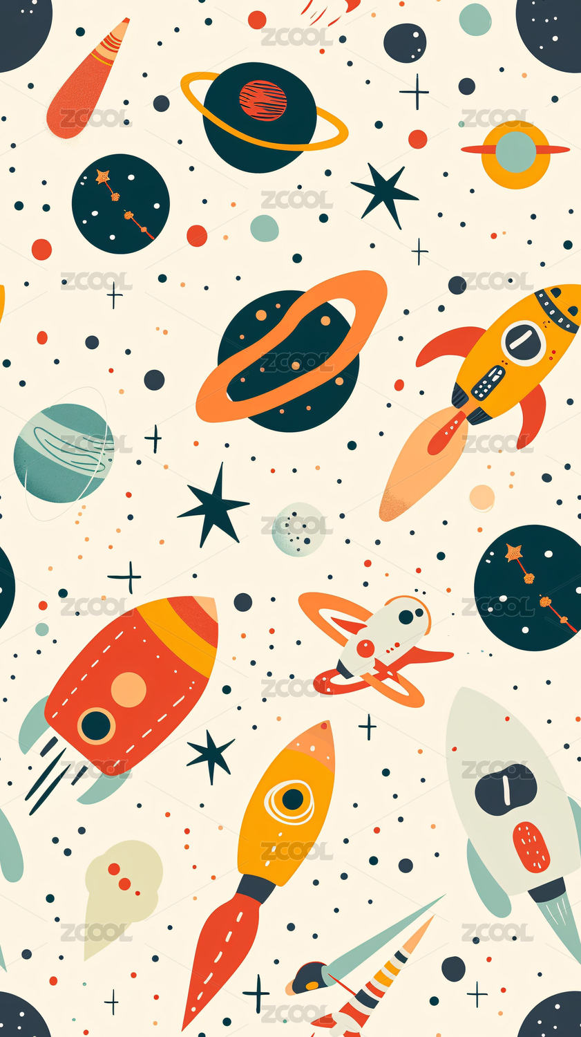 卡通宇宙飞船儿童壁纸图案