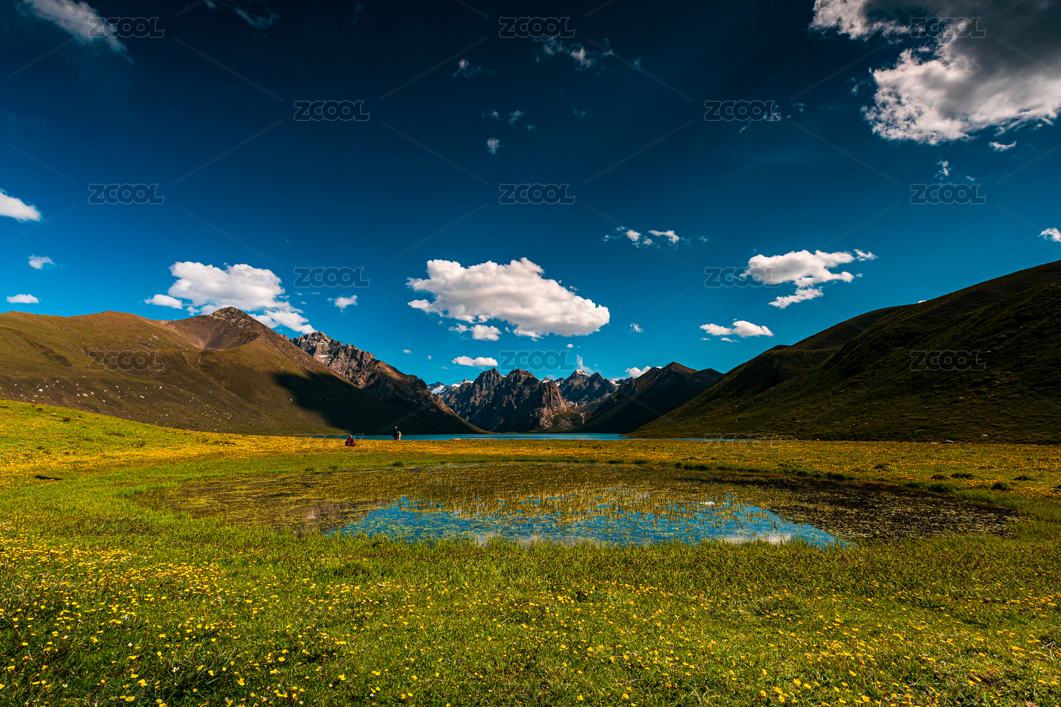 康定市,里索海,风光,风景,雪山,贡嘎雪山,天空,蓝天白云,高原,川藏高原