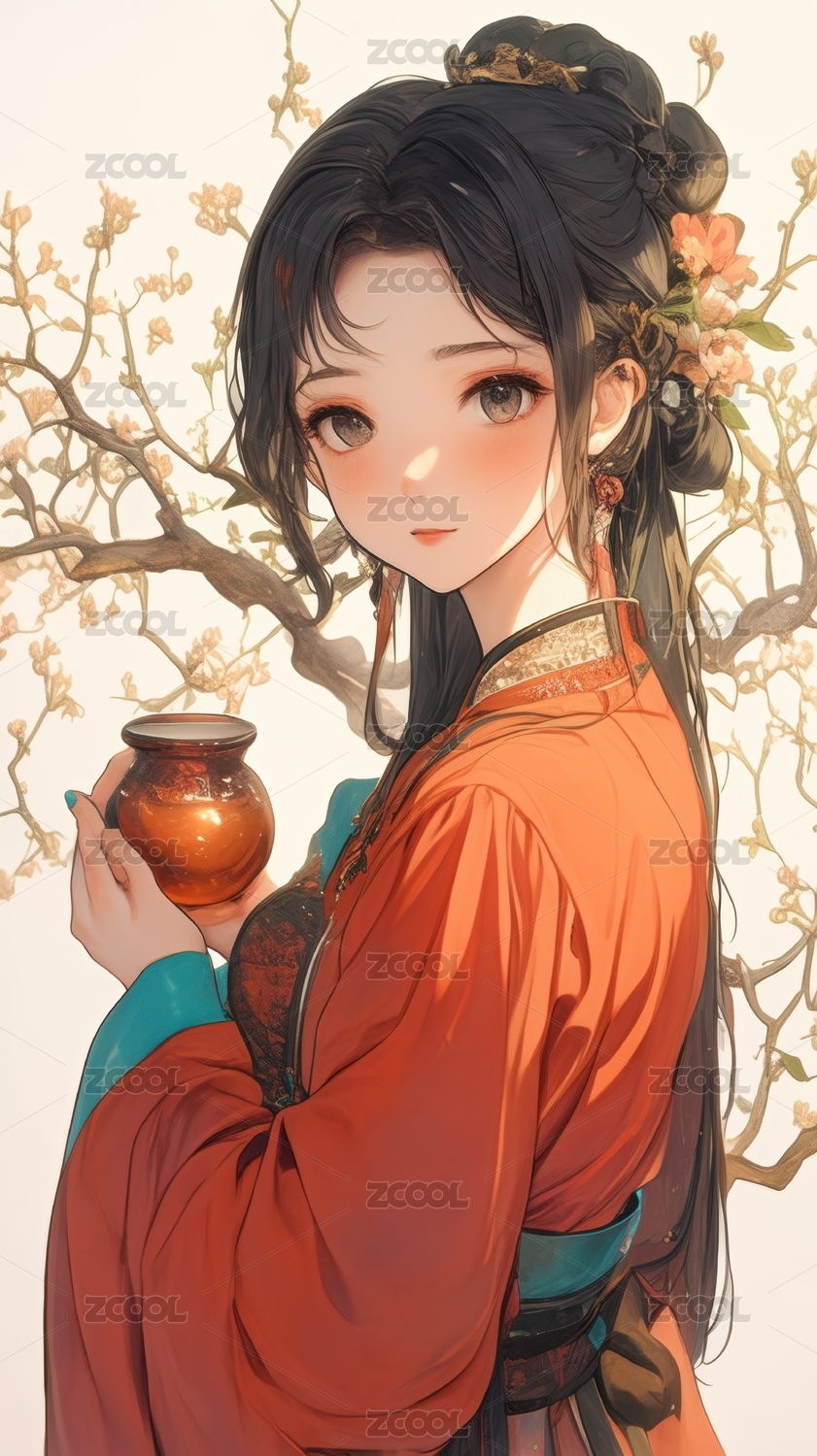 插画,中国风,美女,AIGCFG,国潮,复古,写意,人物,古韵,女孩