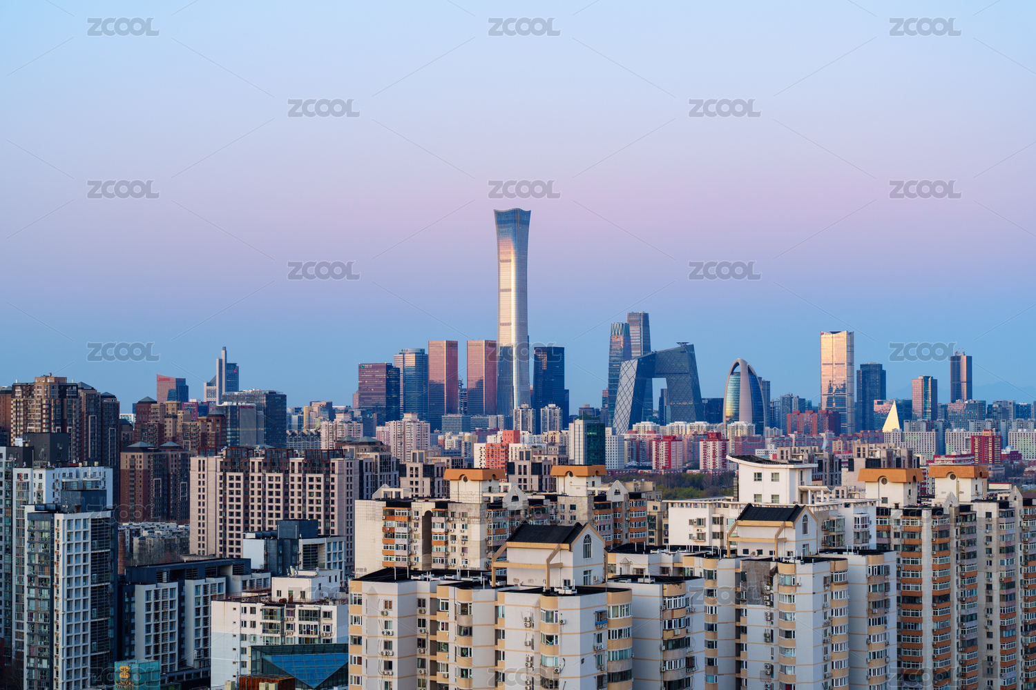 中国北京国贸中国尊CBD区域日落与蓝调夜景