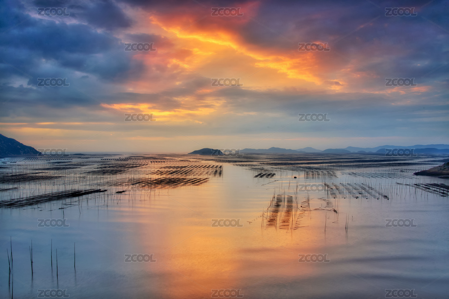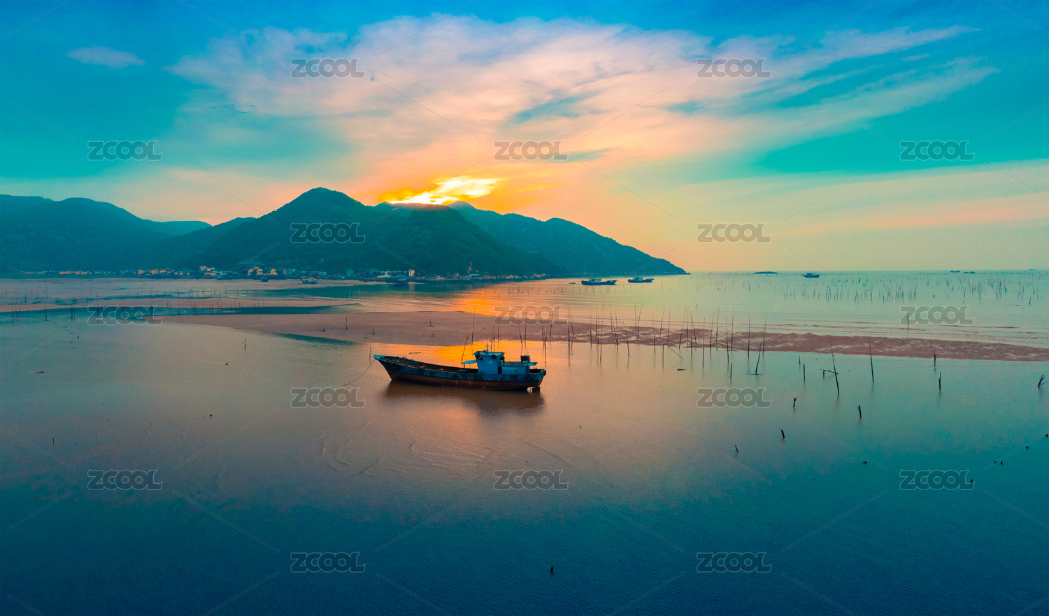 海上日落晚霞的福建霞浦沿海滩涂自然风光