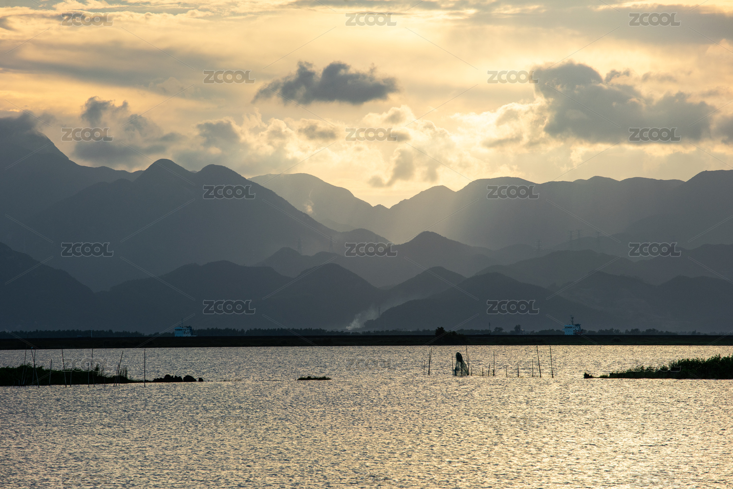 下午,中国,乌云,亚洲,倒影,傍晚,光芒,农村,反射,夕阳
