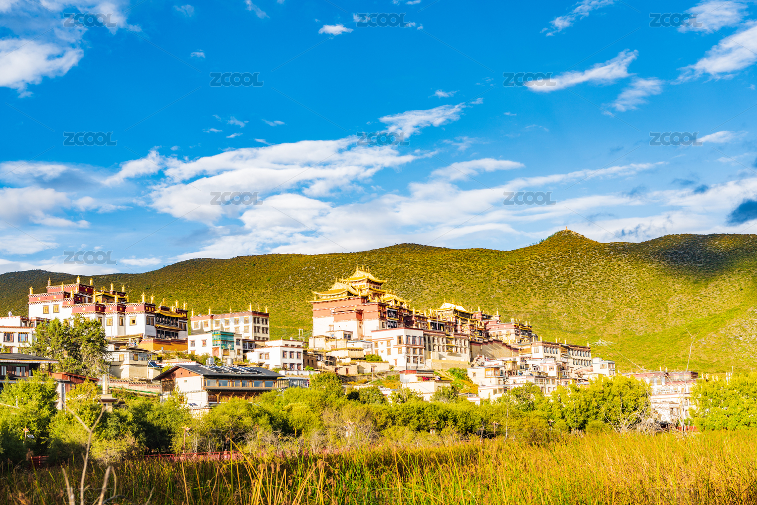中国云南香格里拉松赞林寺雨后彩虹美景