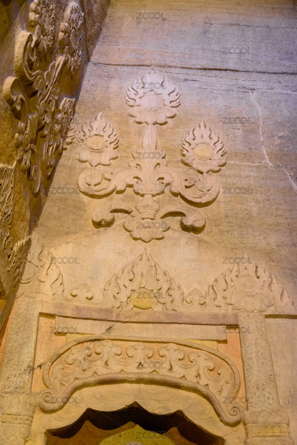 中国民间园林古建筑墙面石刻浮雕装饰画特写
