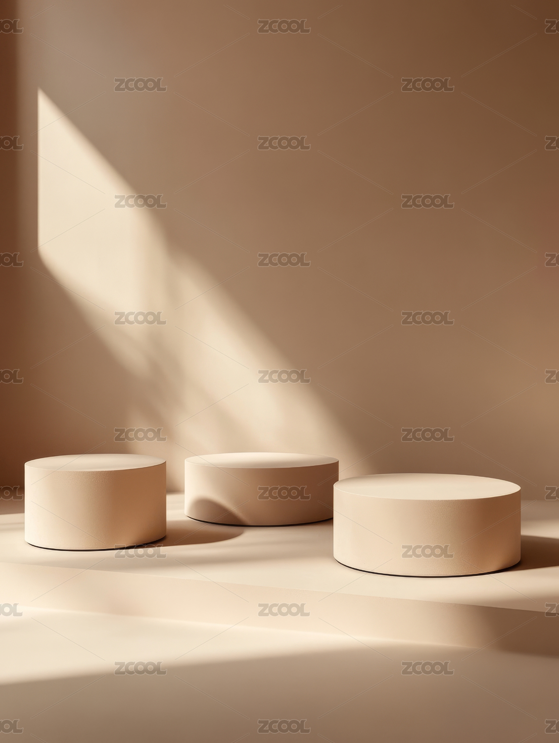 三个产品展示台米色背景