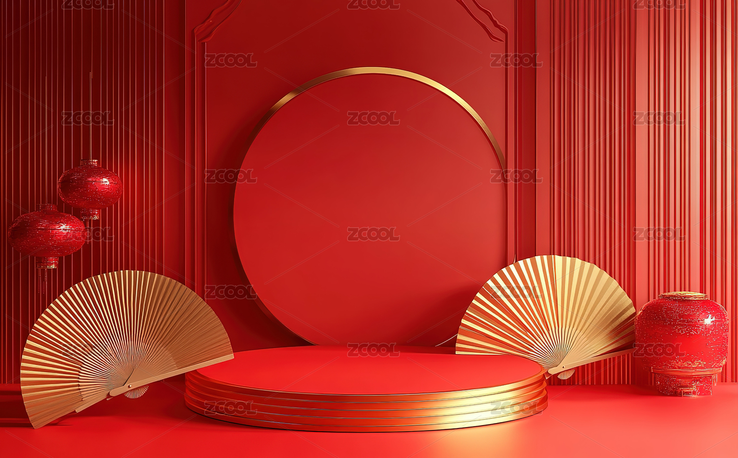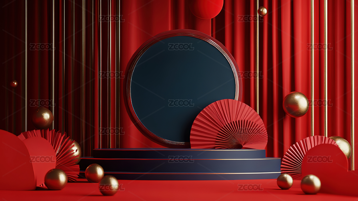 红色背景下的产品展台