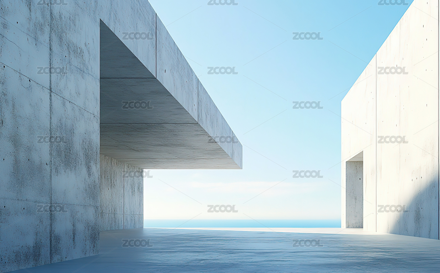 混凝土结构与海景的现代空间