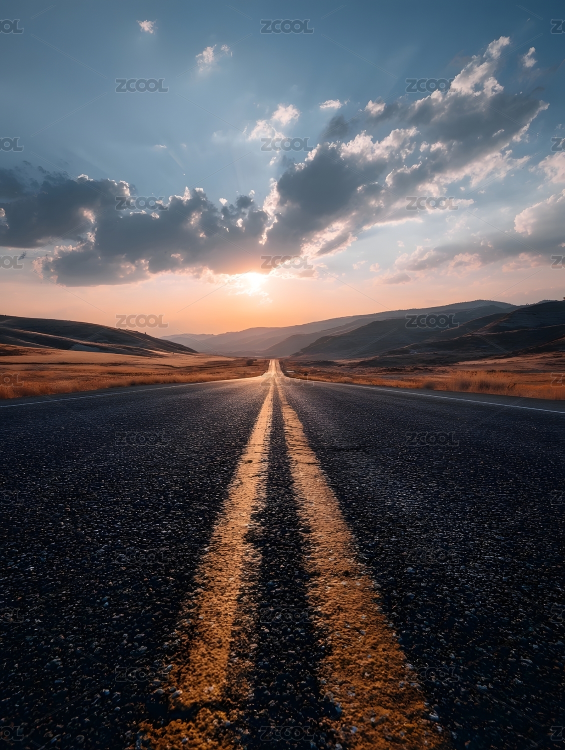中国新疆巴音郭楞阿拉沟公路日落风光