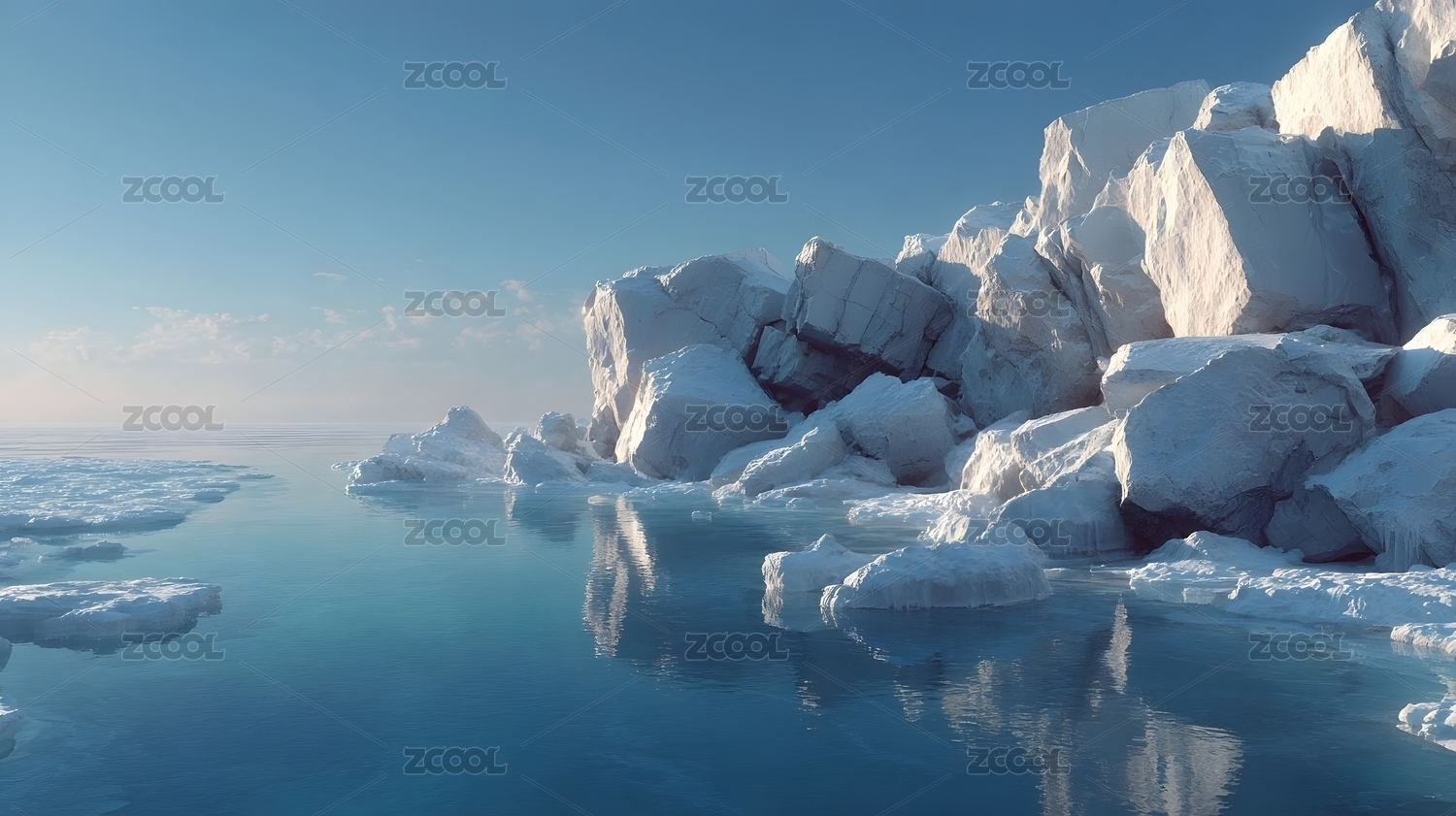 3D,三维,光滑,全球,全球变暖,冬季,冰,冰山,冻结,夕阳