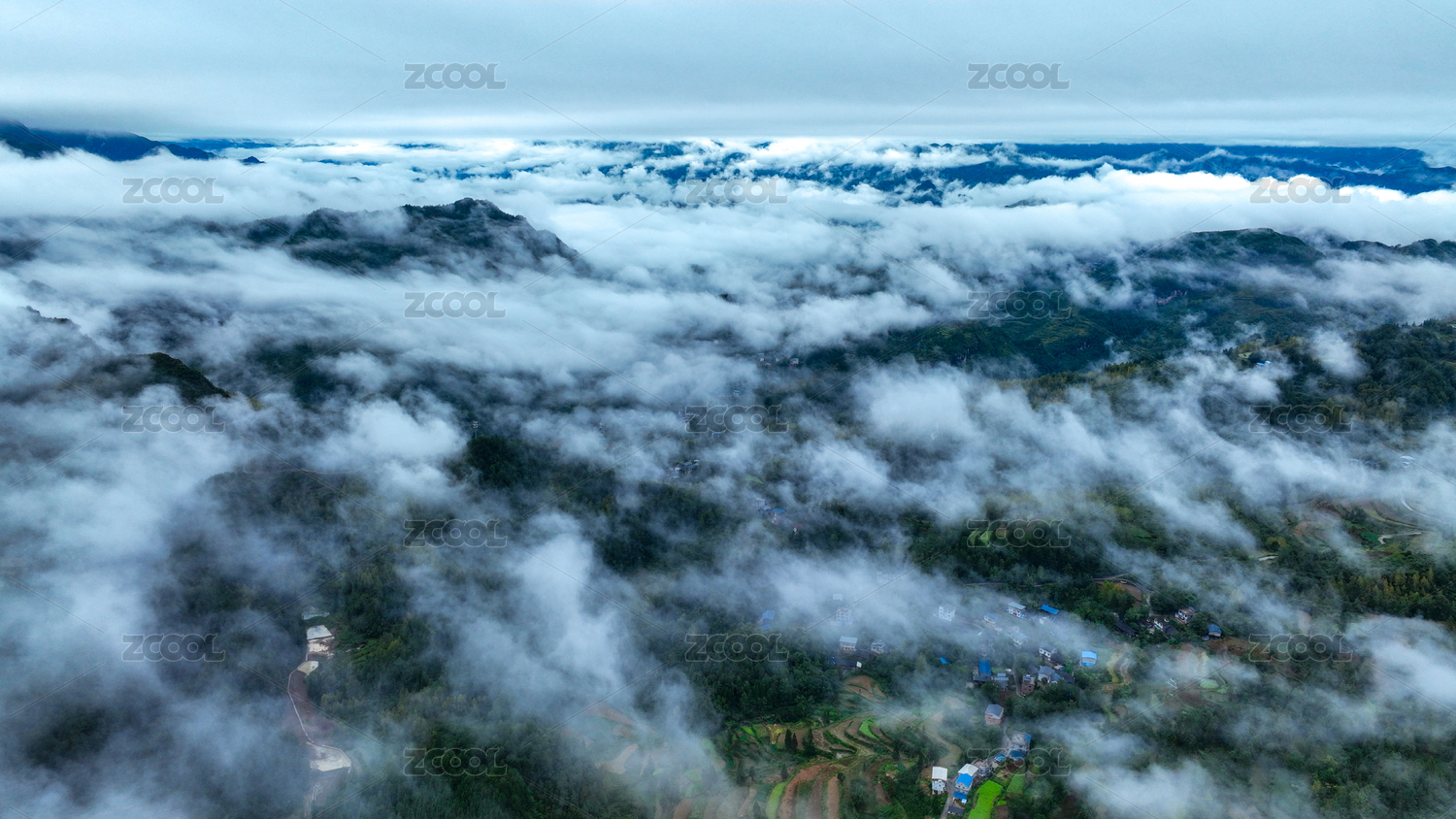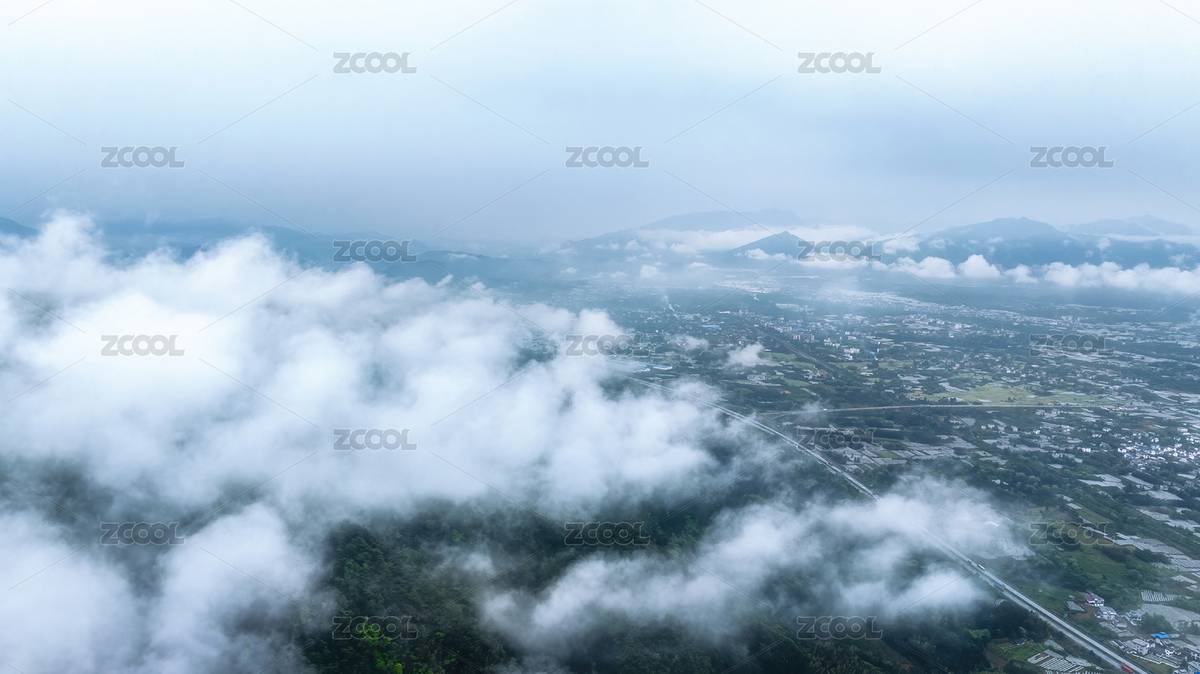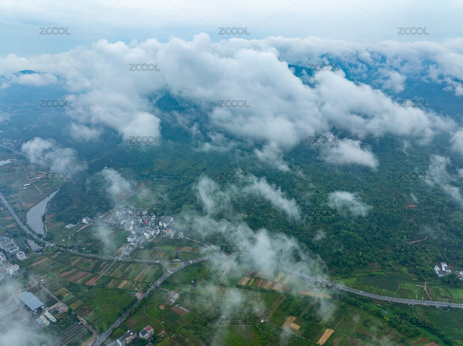 宁波宁海西店中国城镇乡村春天雨后云海航拍