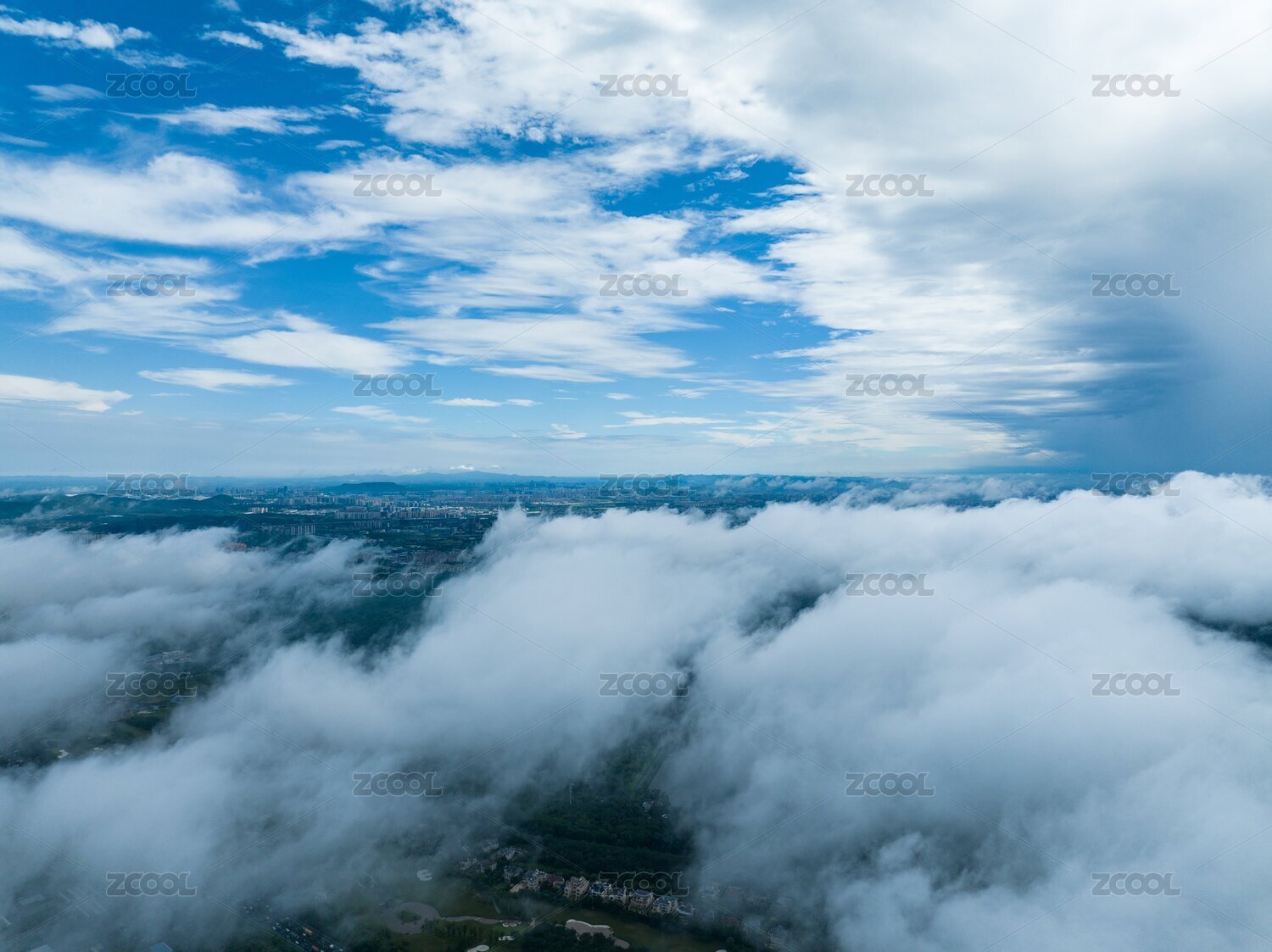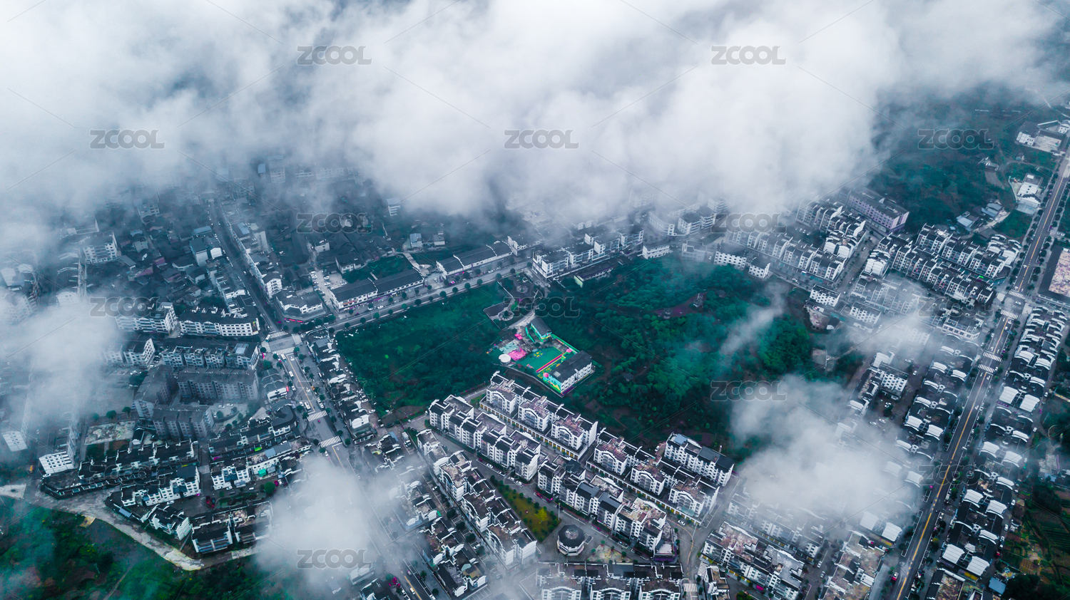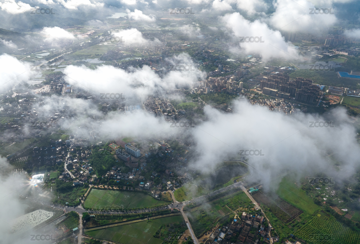 宁波宁海西店中国城镇乡村春天雨后云海航拍