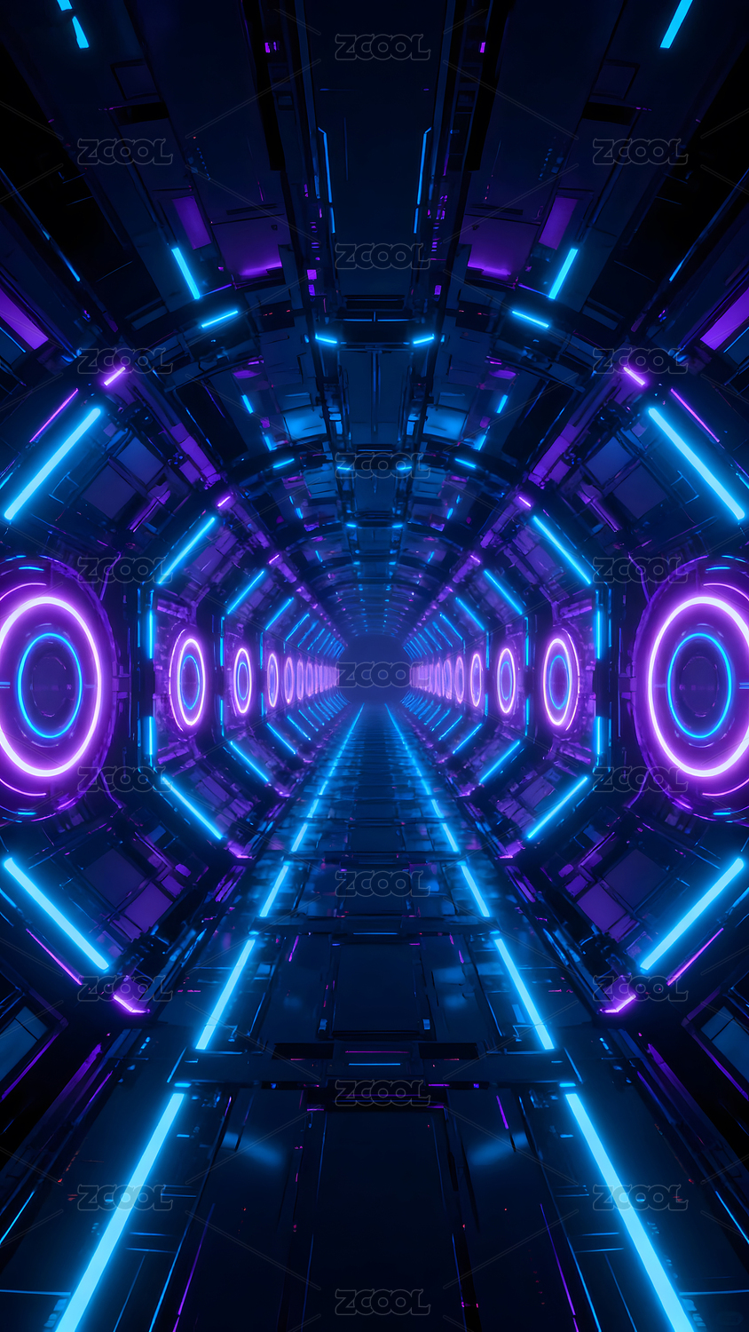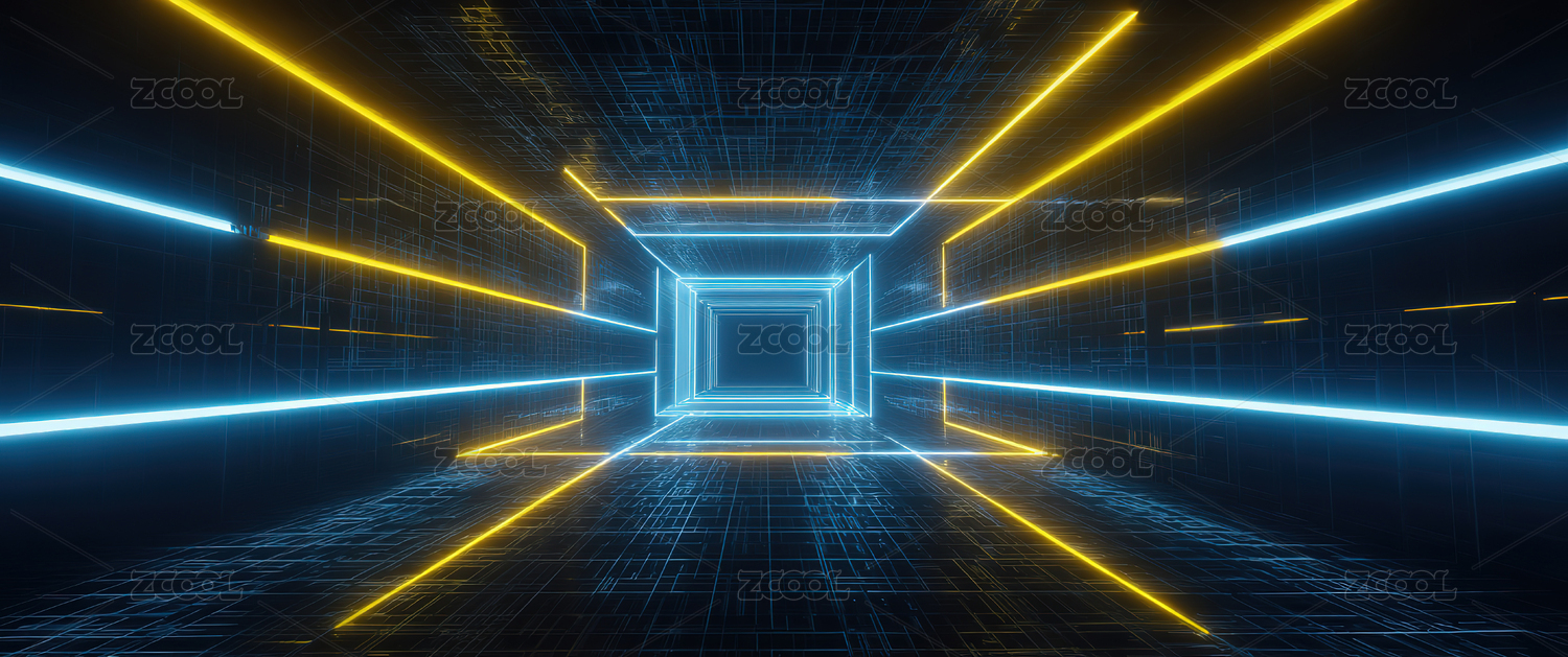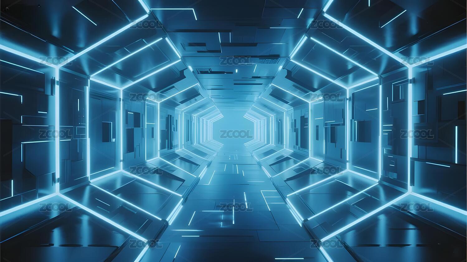 有发光线条条形灯组成的几何形状科技感通道隧道背景素材
