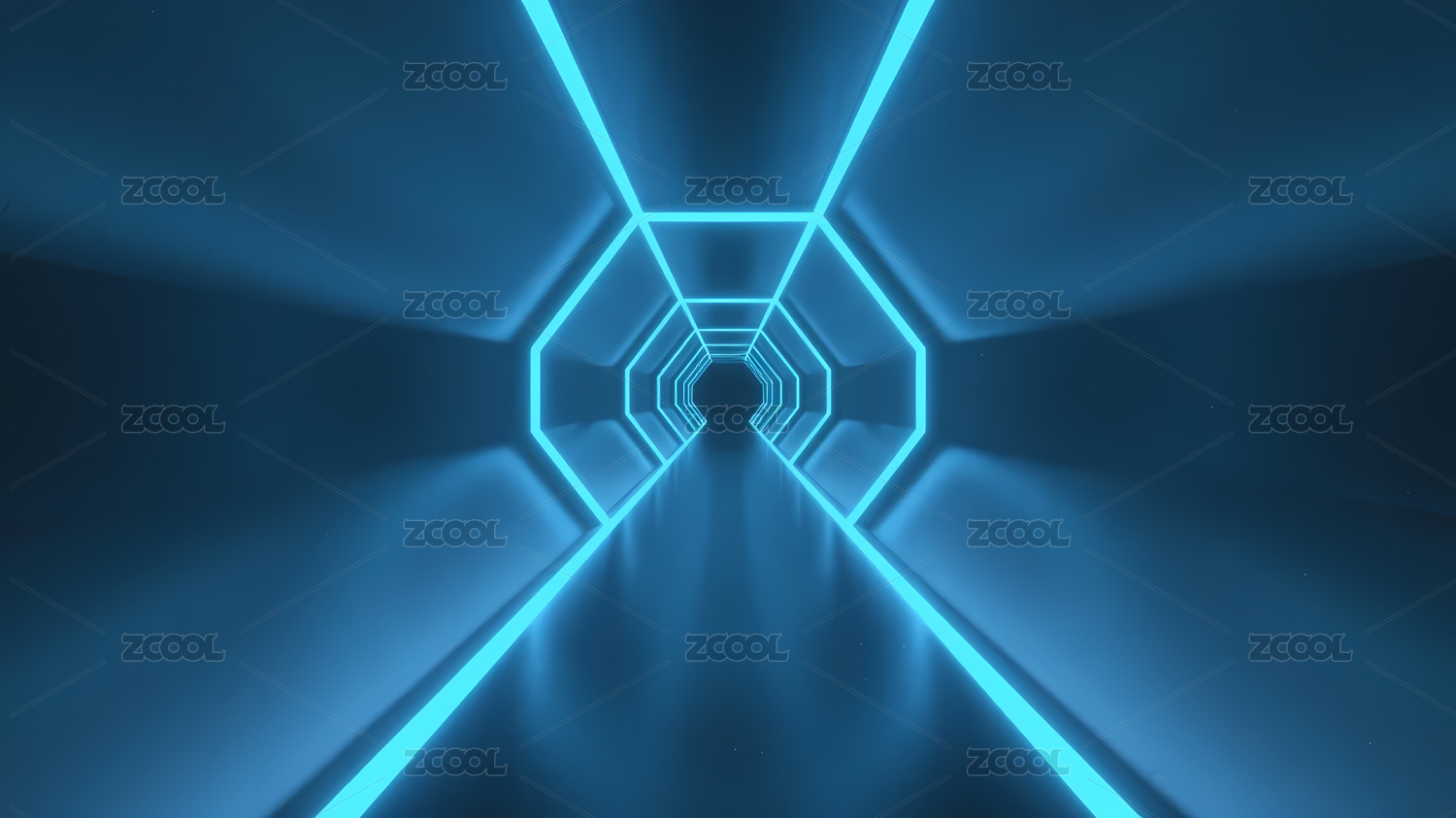 蓝色霓虹六边形隧道