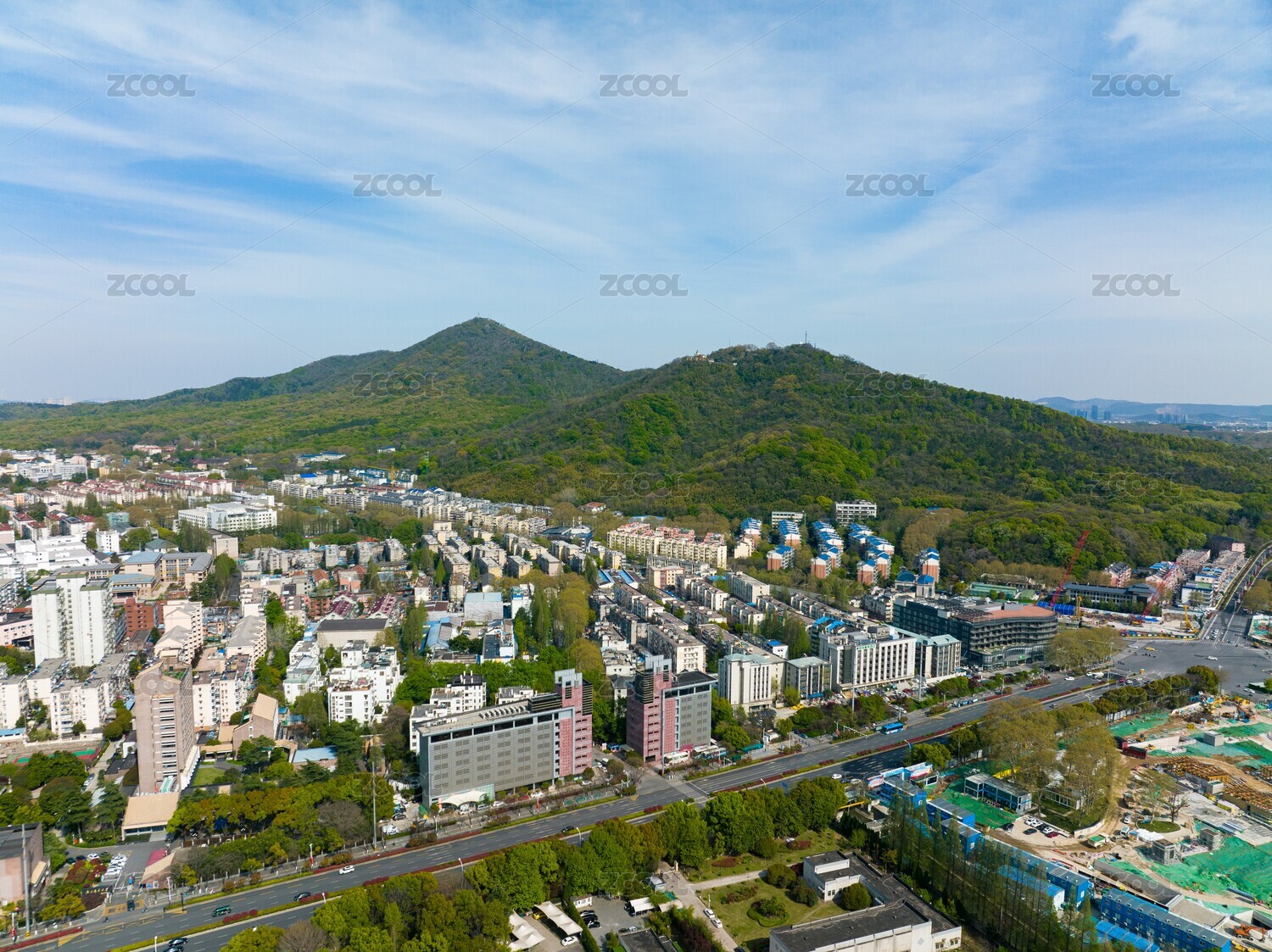 航拍杭州留下西穆坞村屏基山公园与居民区