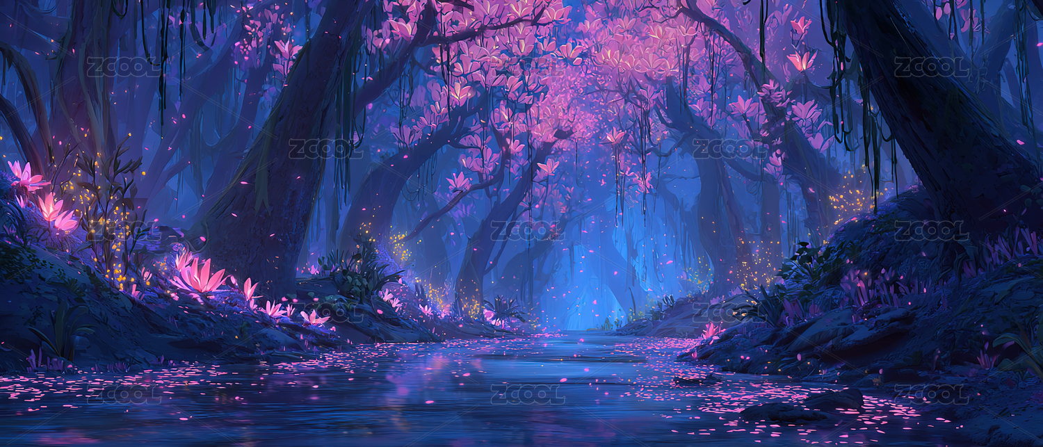 创意,梦幻,风景,绘本,插画,唯美,商务,森林,湖水,树木
