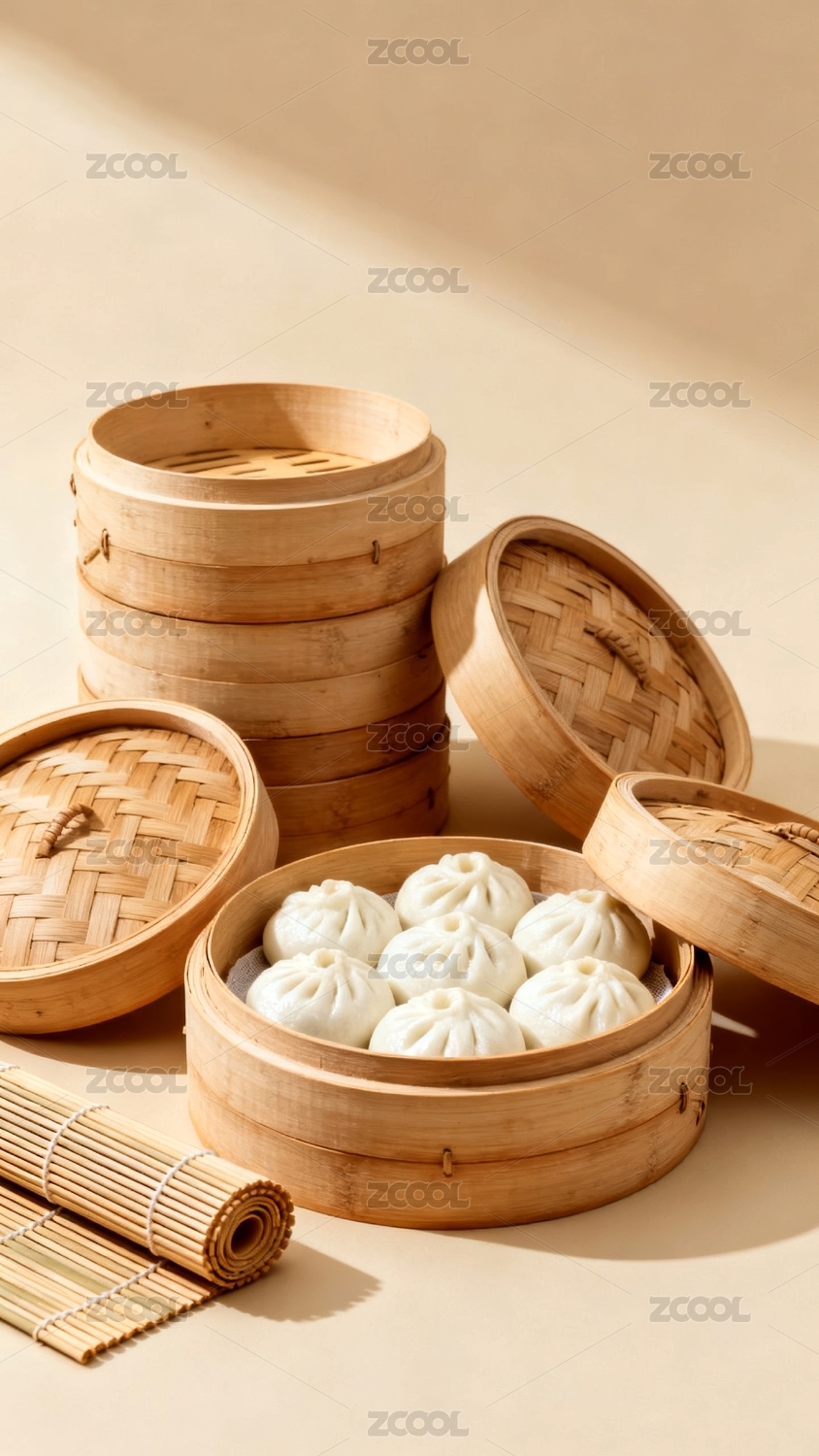 蒸笼质朴感美食展示场景