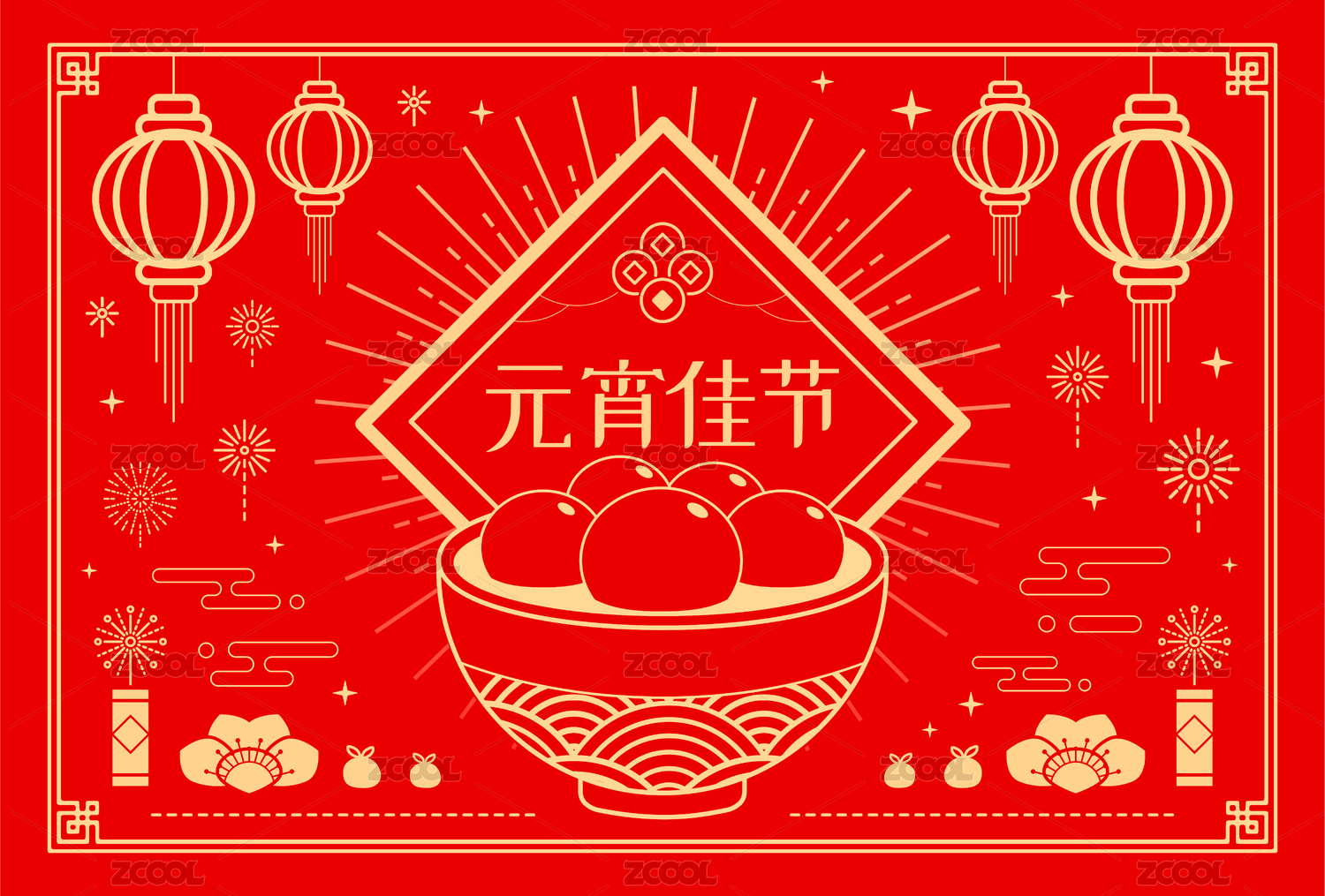 元宵佳节花灯汤圆中式背景插画和艺术字体