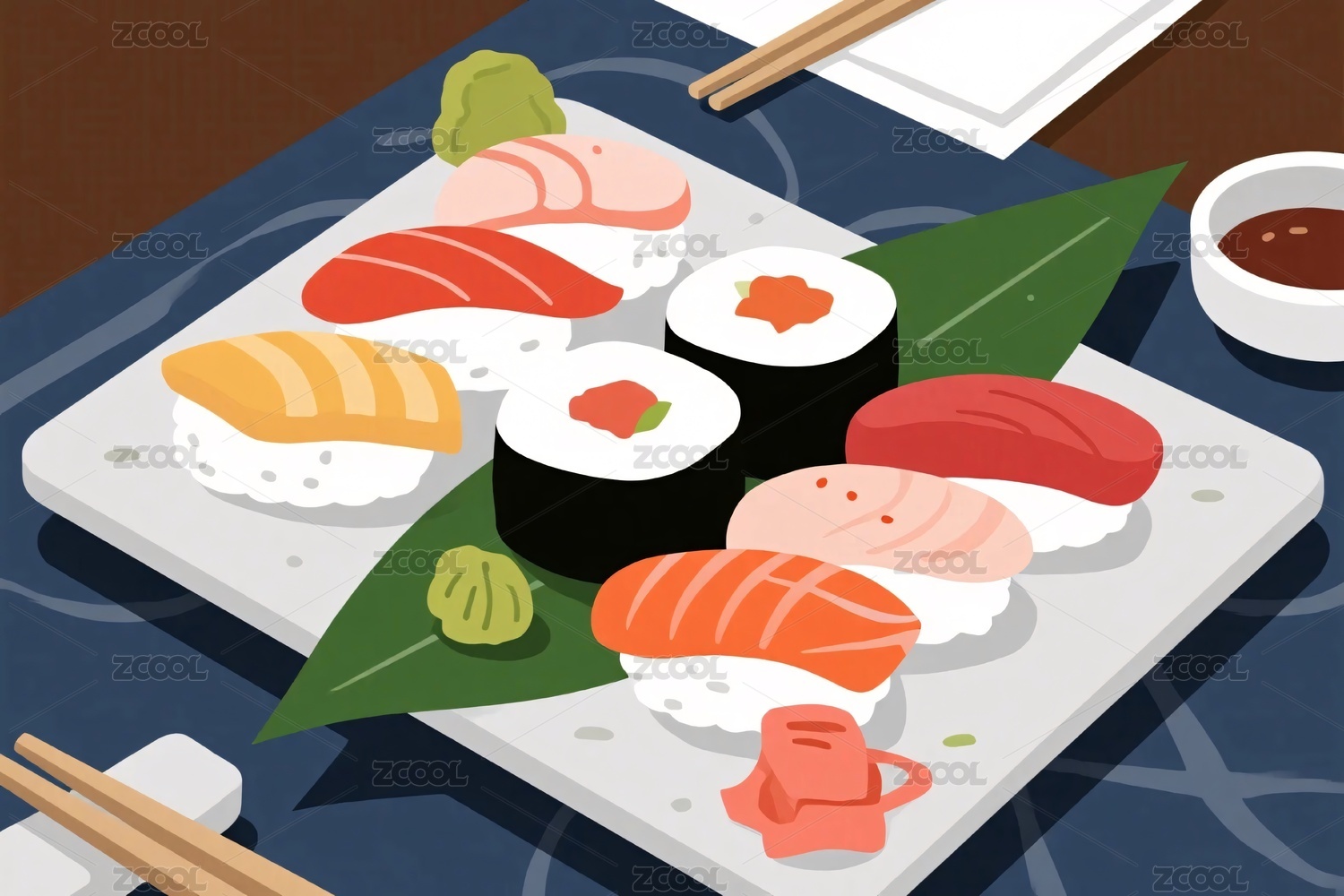 卡通,寿司,插画,食物,餐饮,午餐,米饭团
