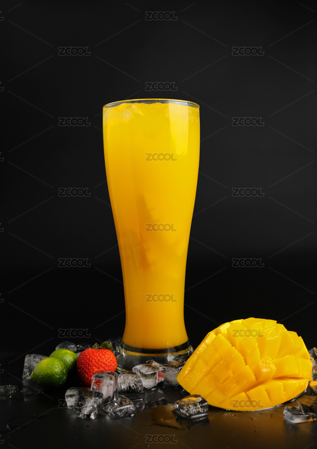 大理石背景上的冷饮芒果汁