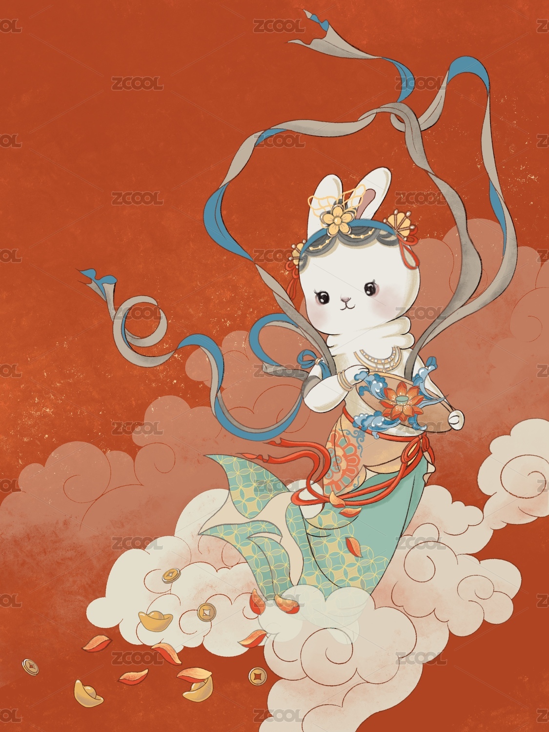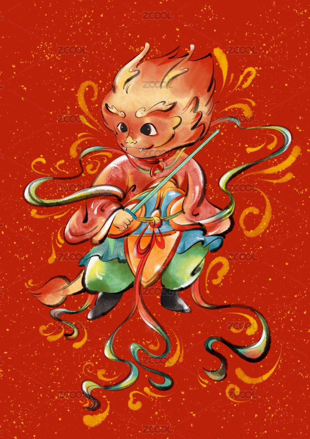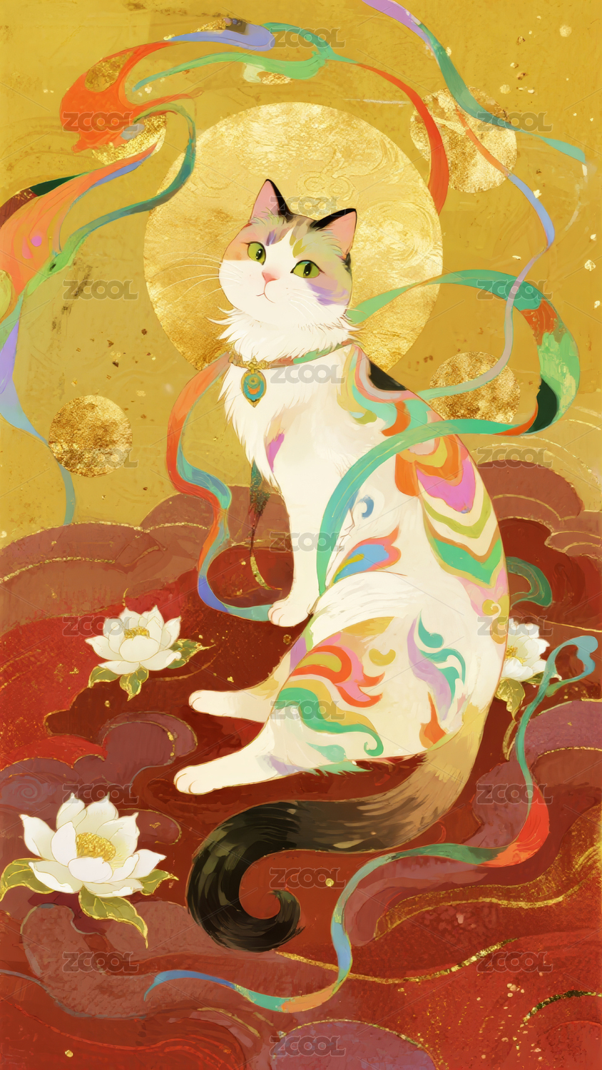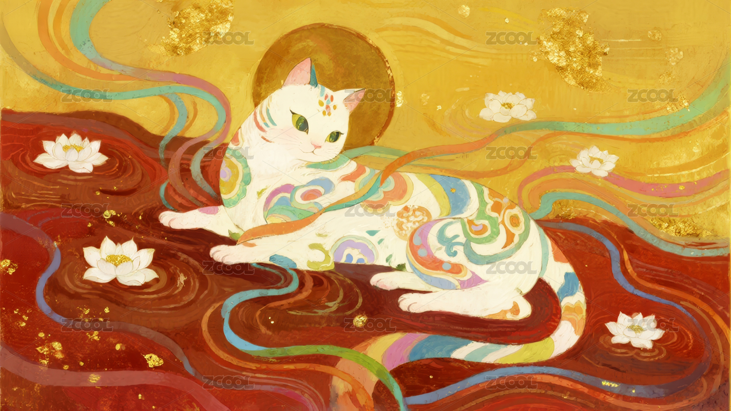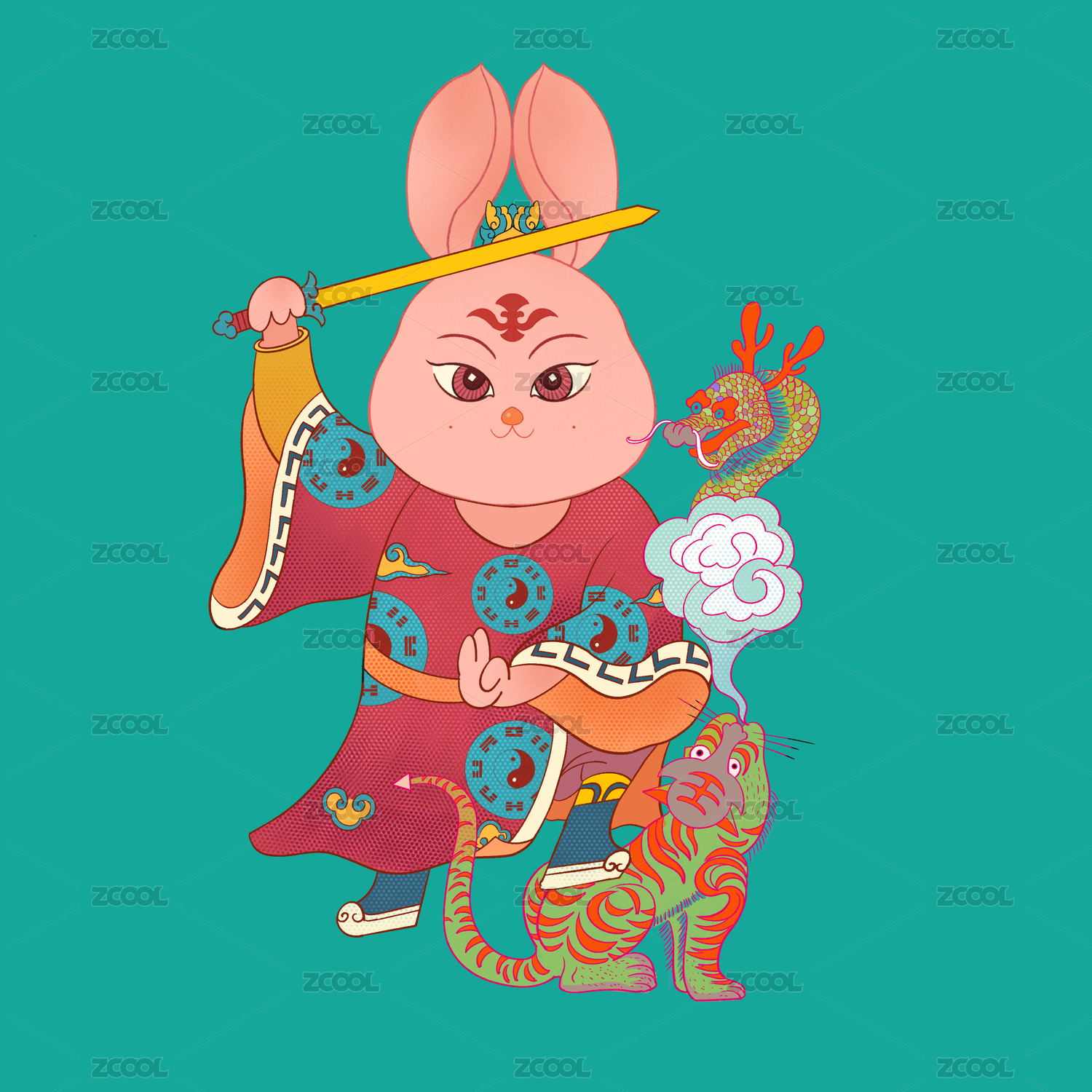 中国风,国潮,门神,年画,古风,小动物,猫,武将,白猫,HEBTHXC