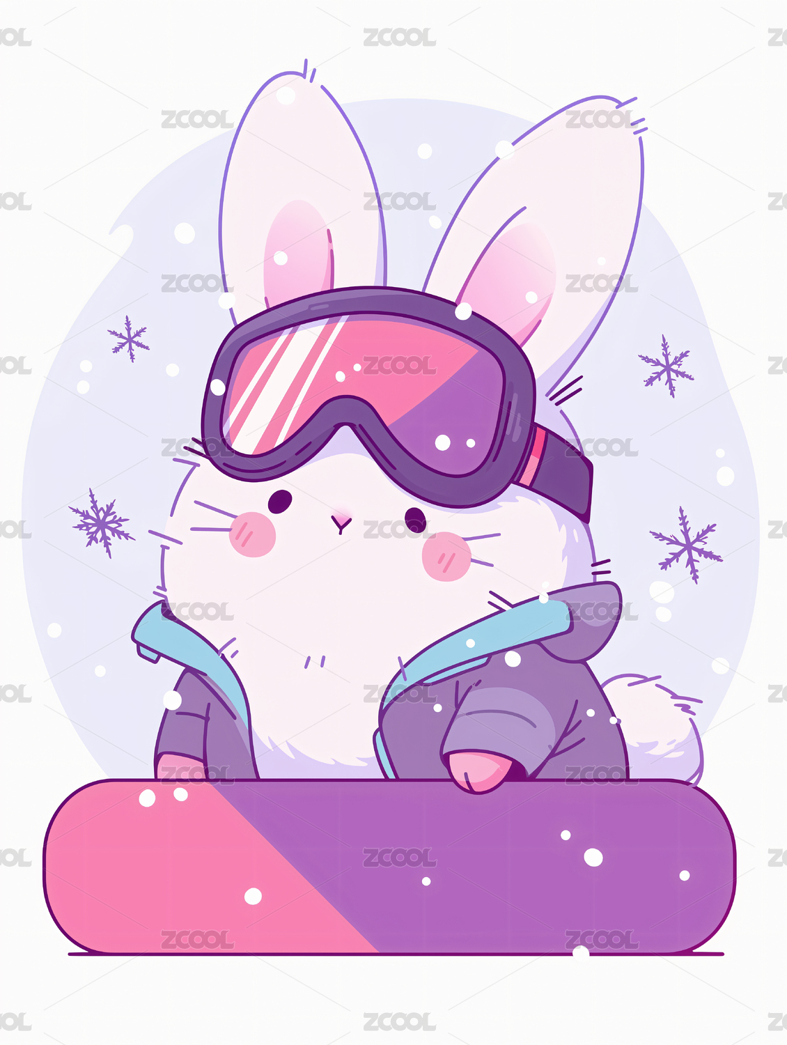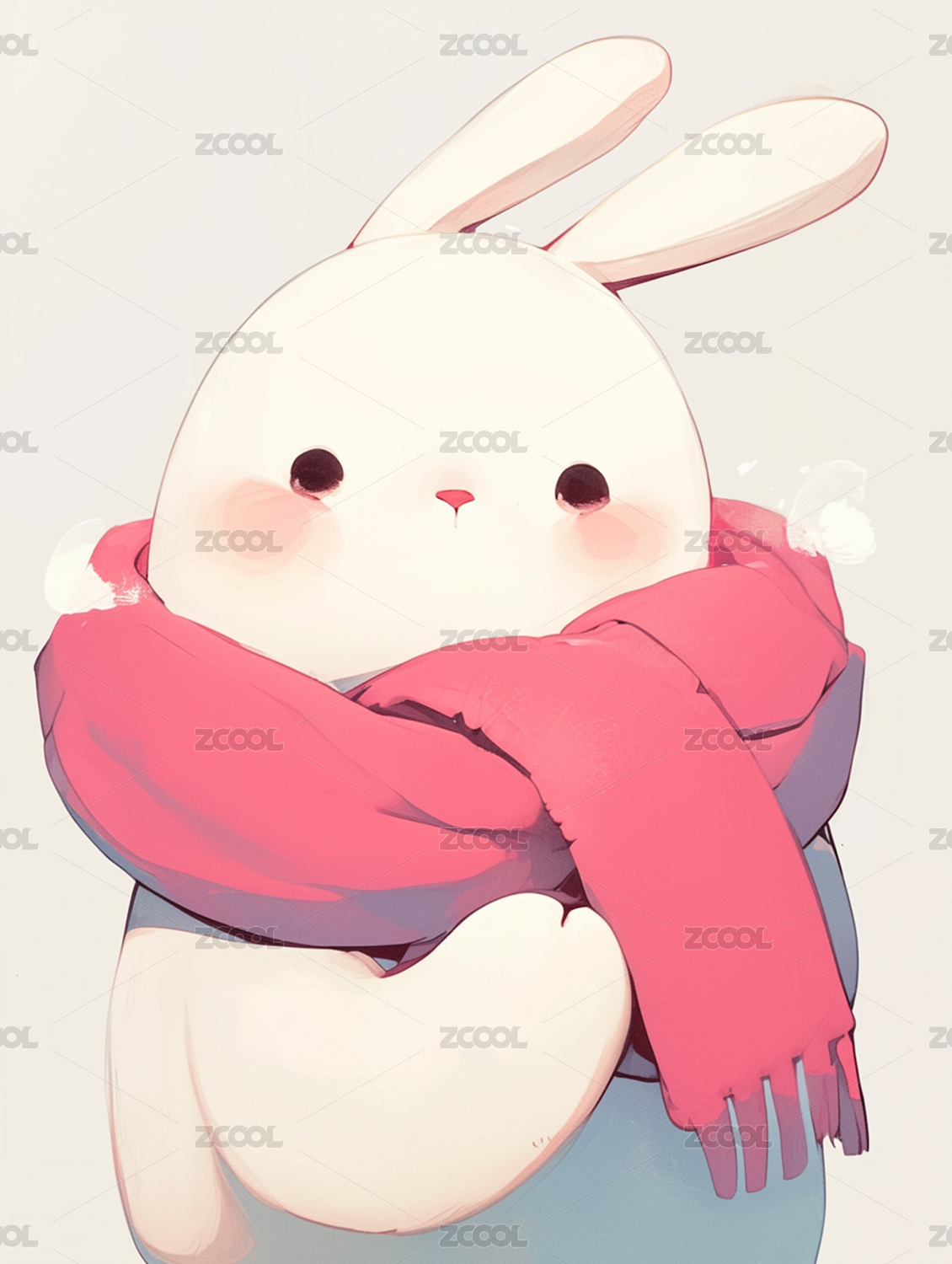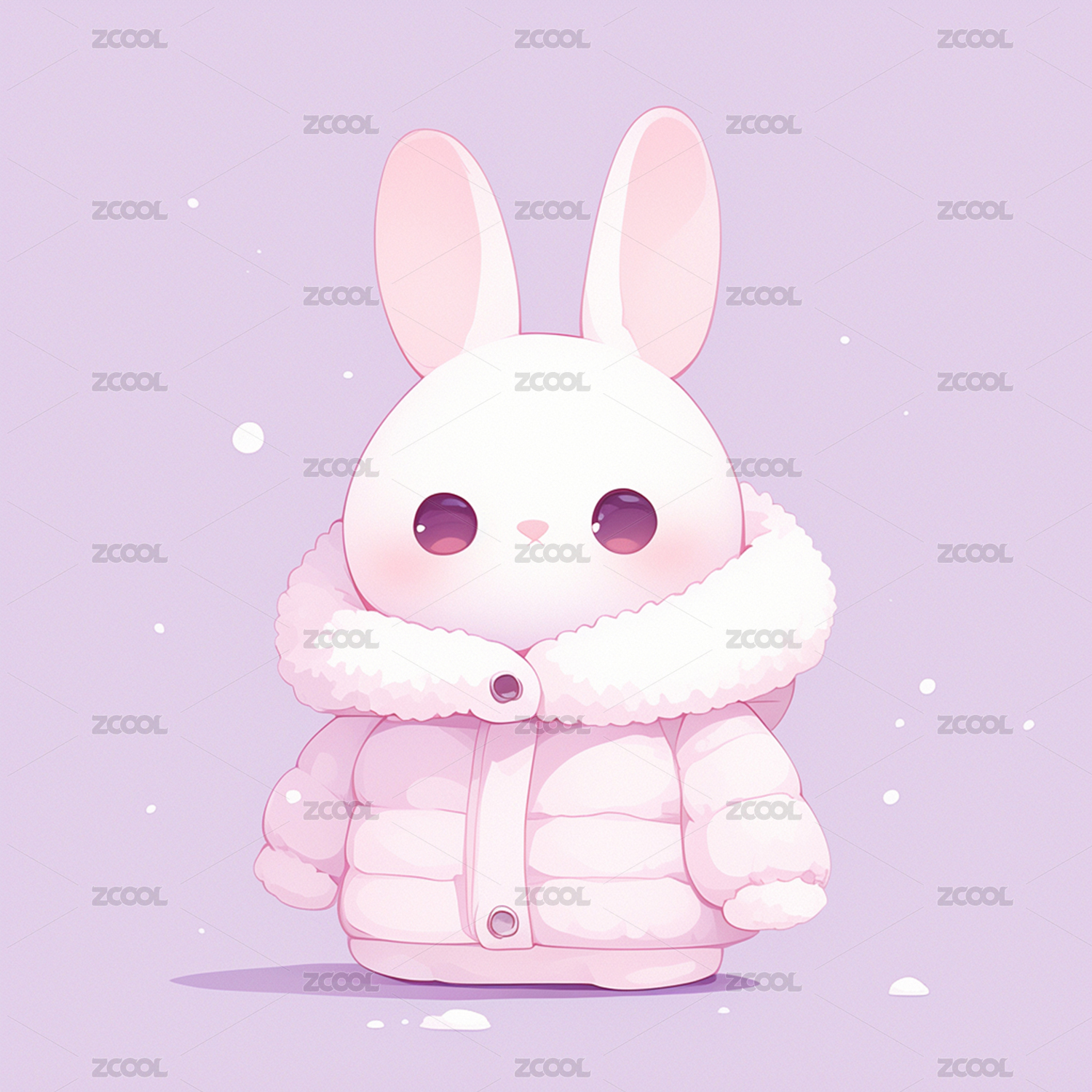 身穿厚厚的粉色大衣的可爱卡通小白兔