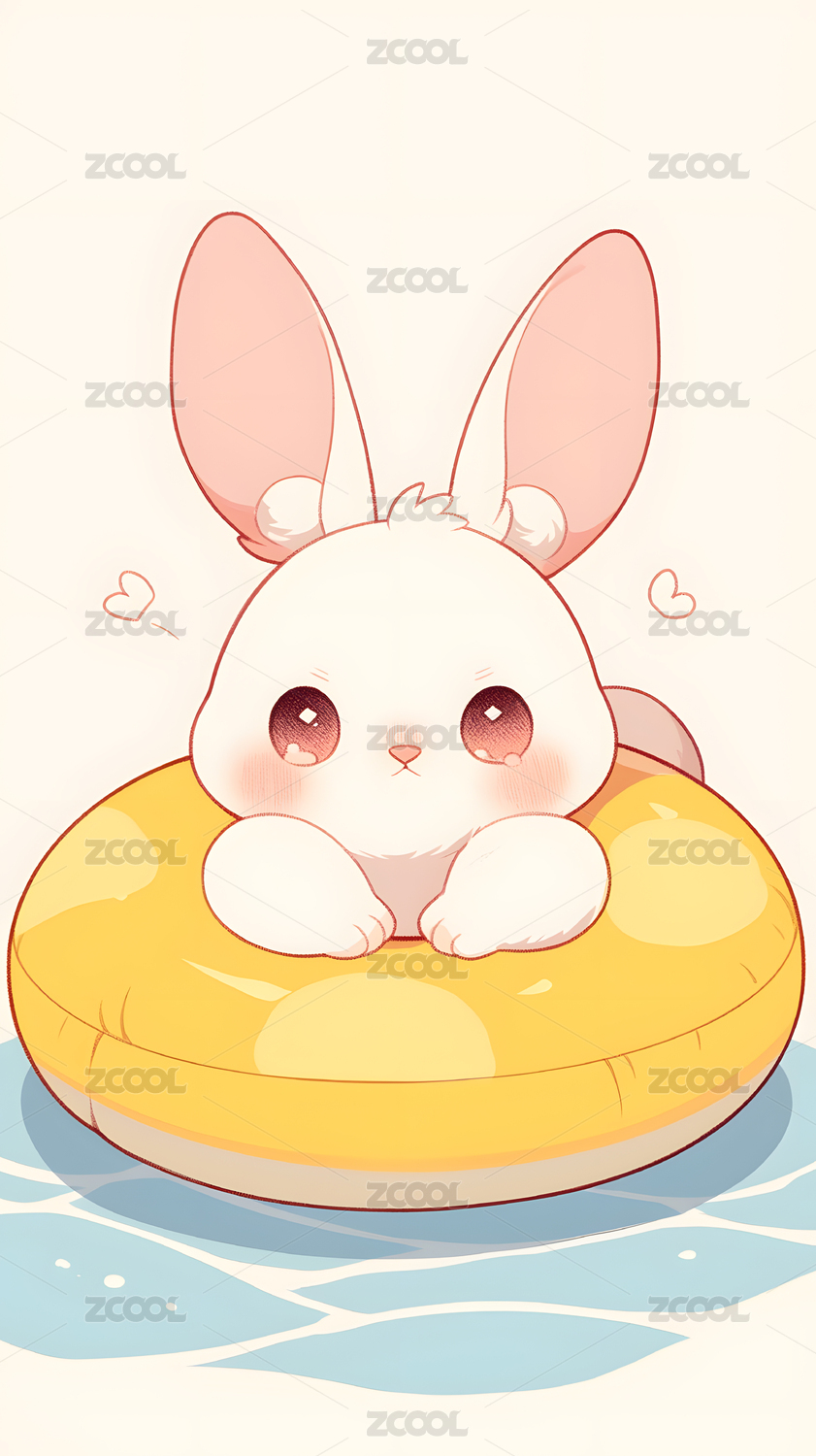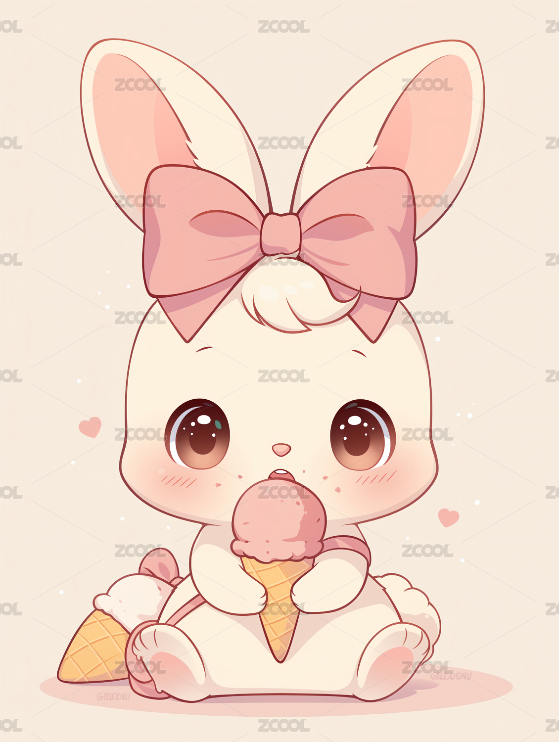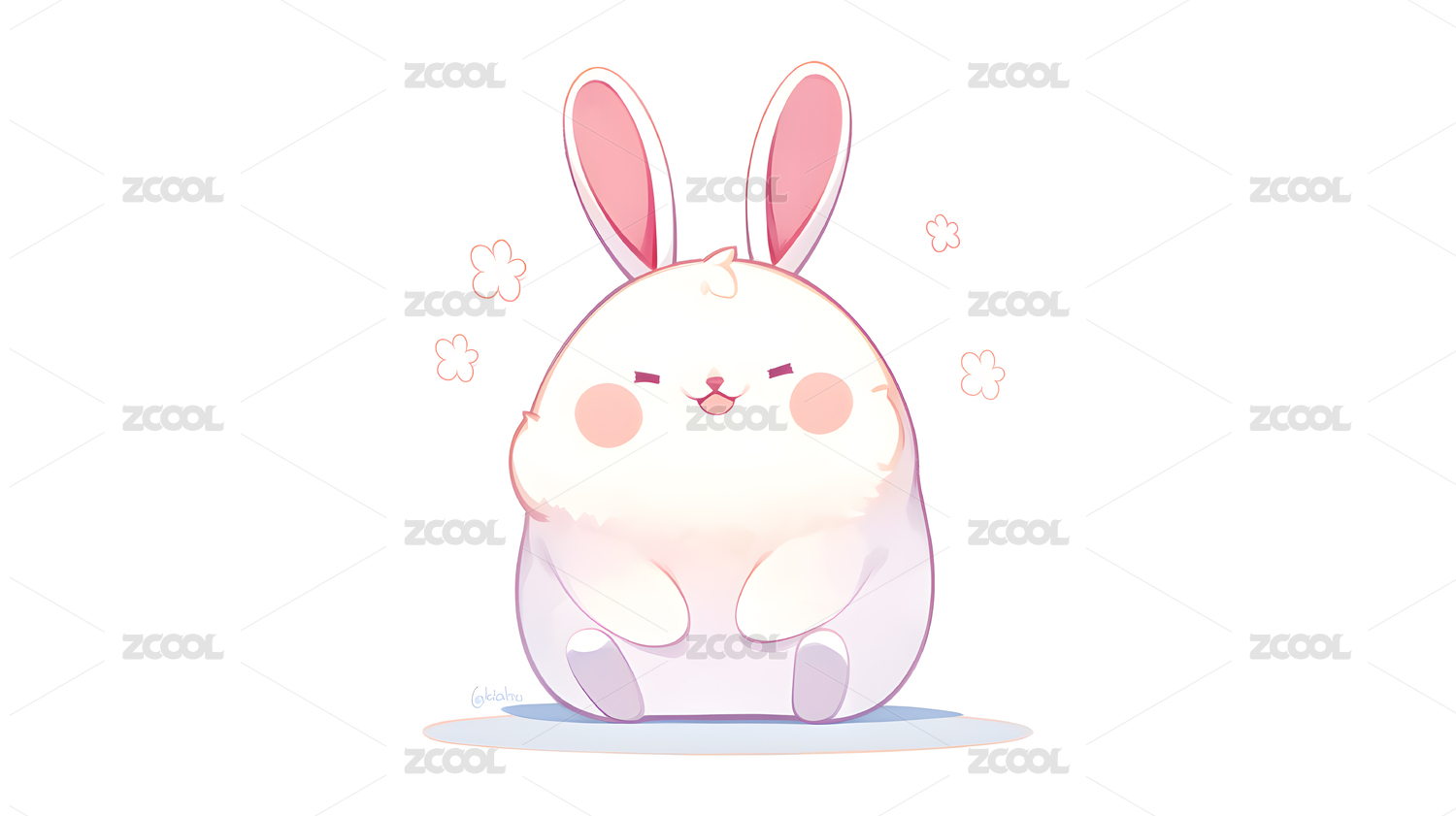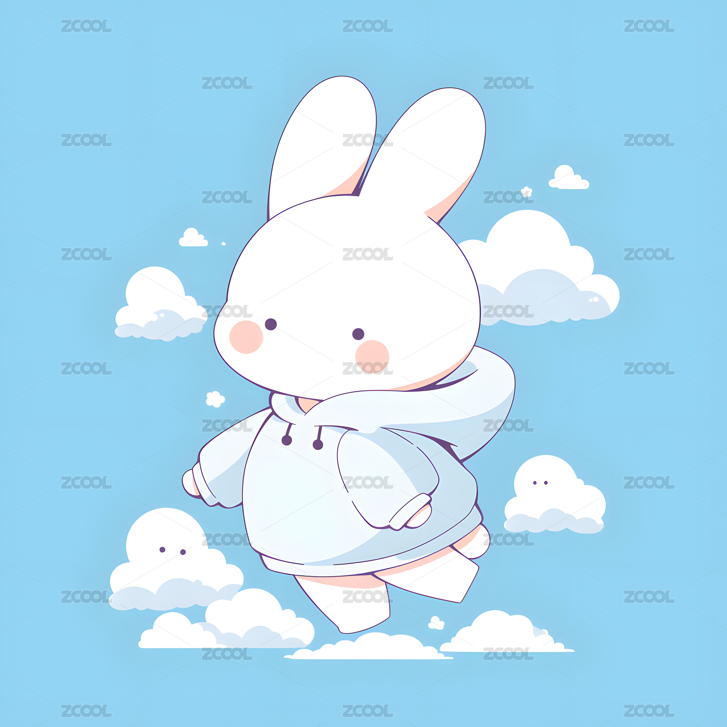身穿厚厚的粉色大衣的可爱卡通小白兔