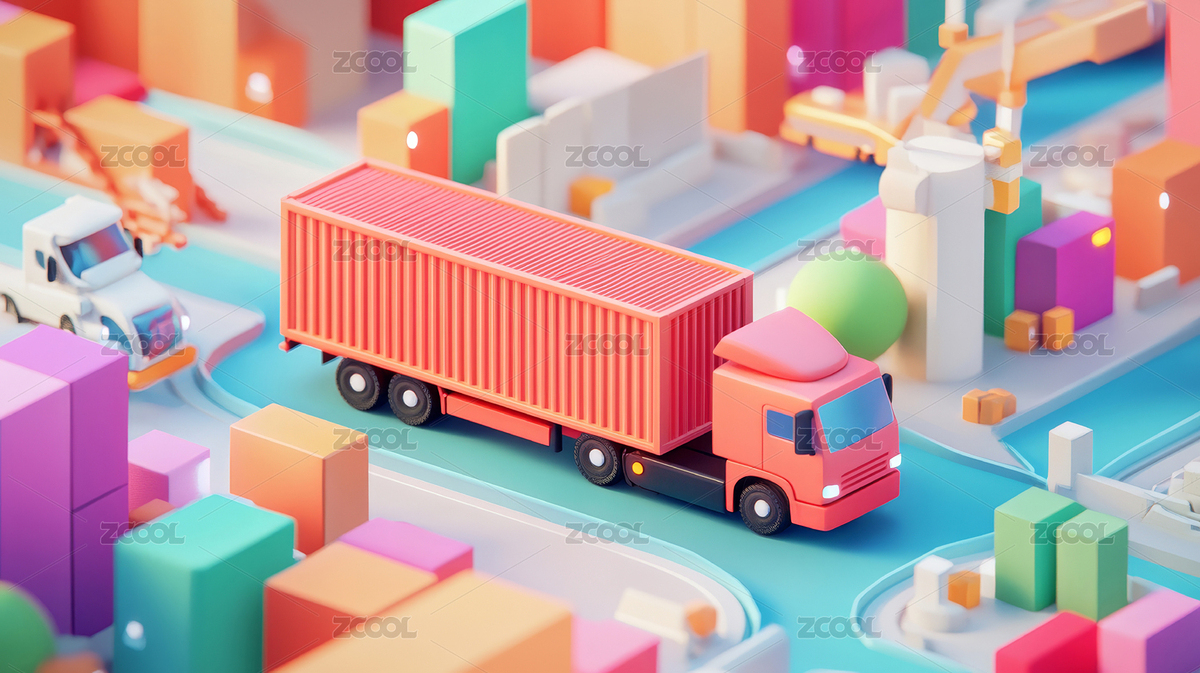 汽车,快递,货运,交通,运输,园区,物流,3D,货车,卡车