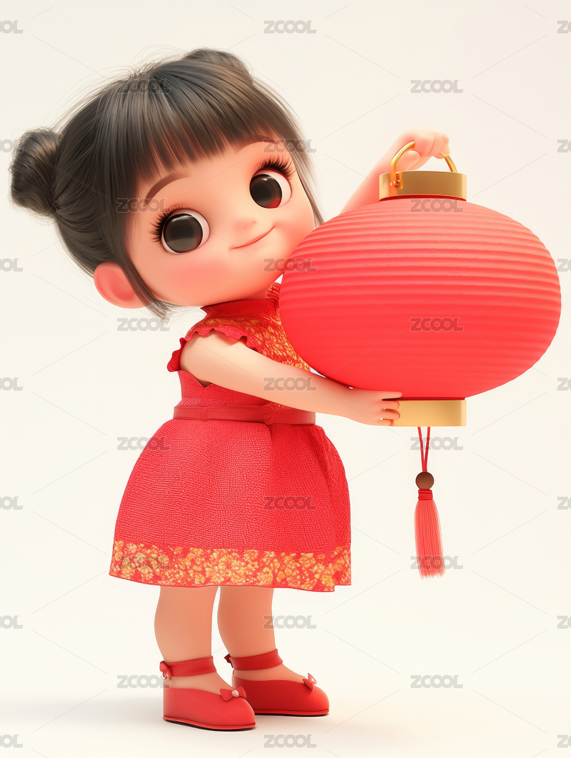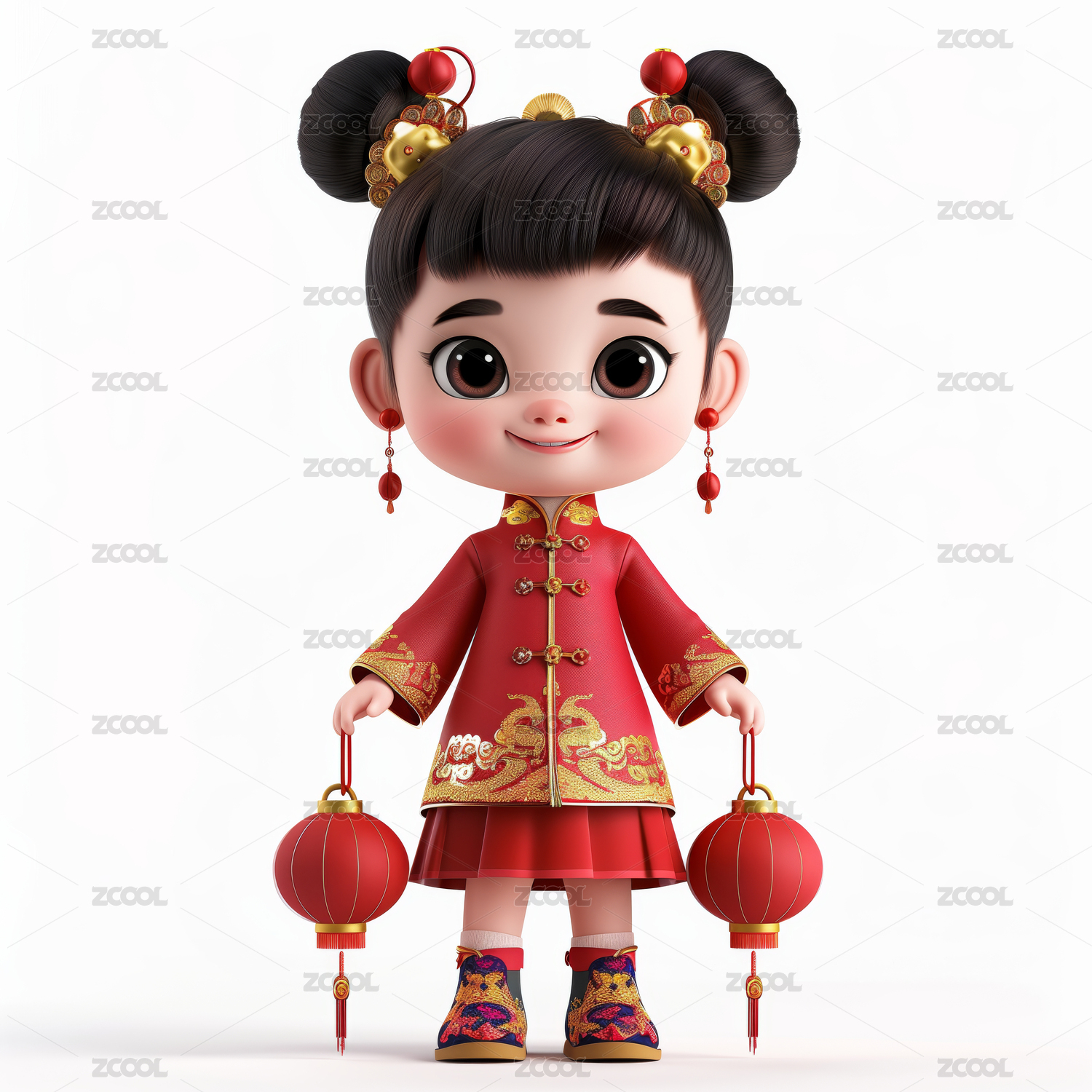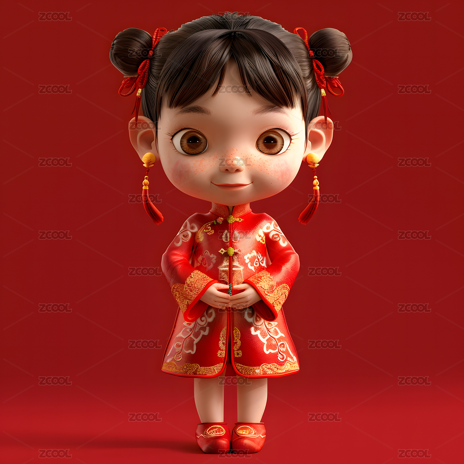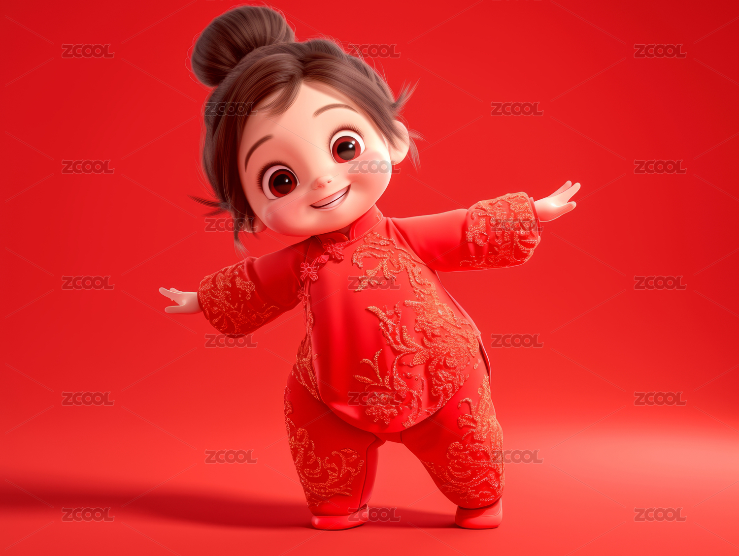女孩,福娃,衣服,刺绣,春节,留白,背景,人物,过年,开心