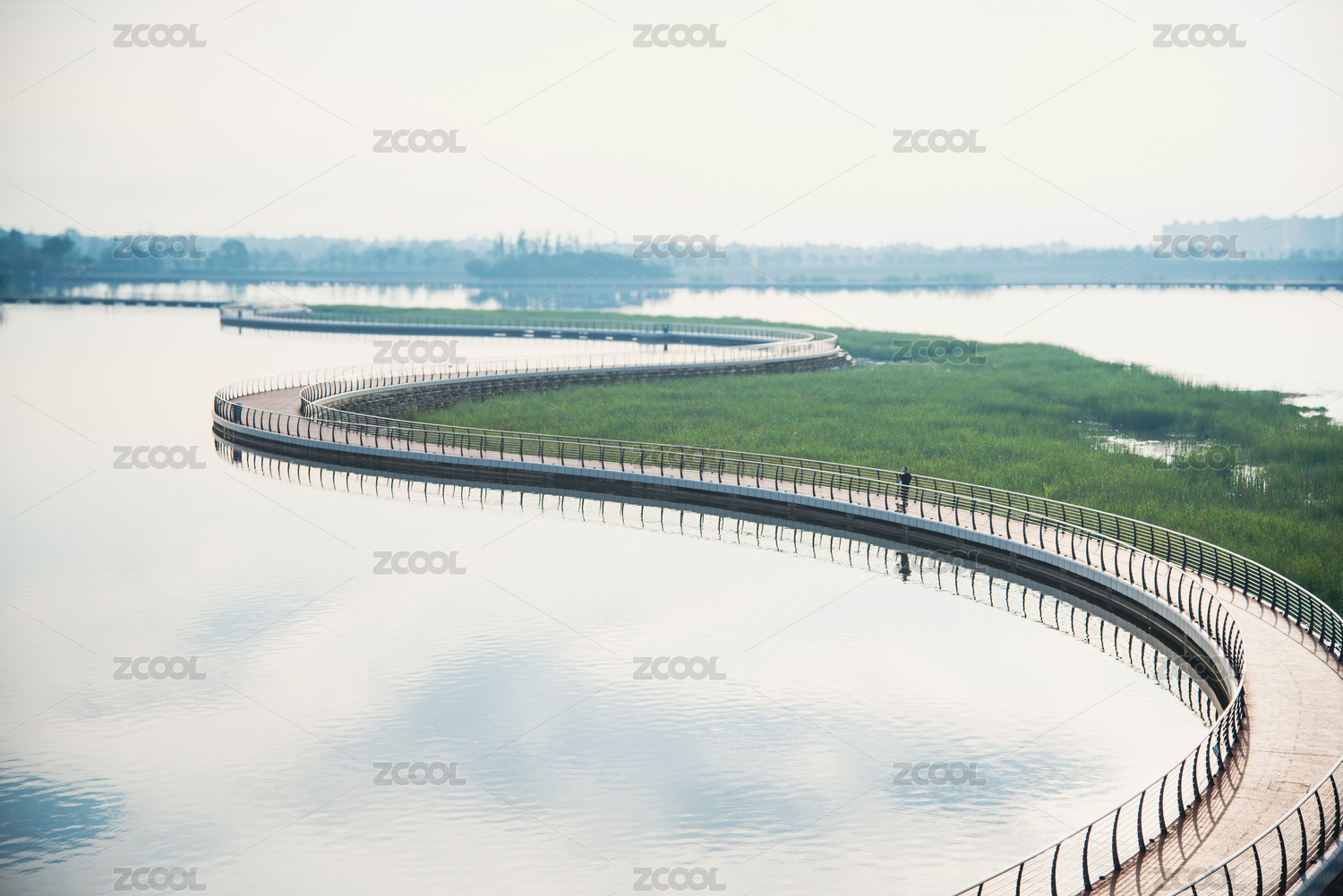 远眺上海青浦元荡湖步行桥