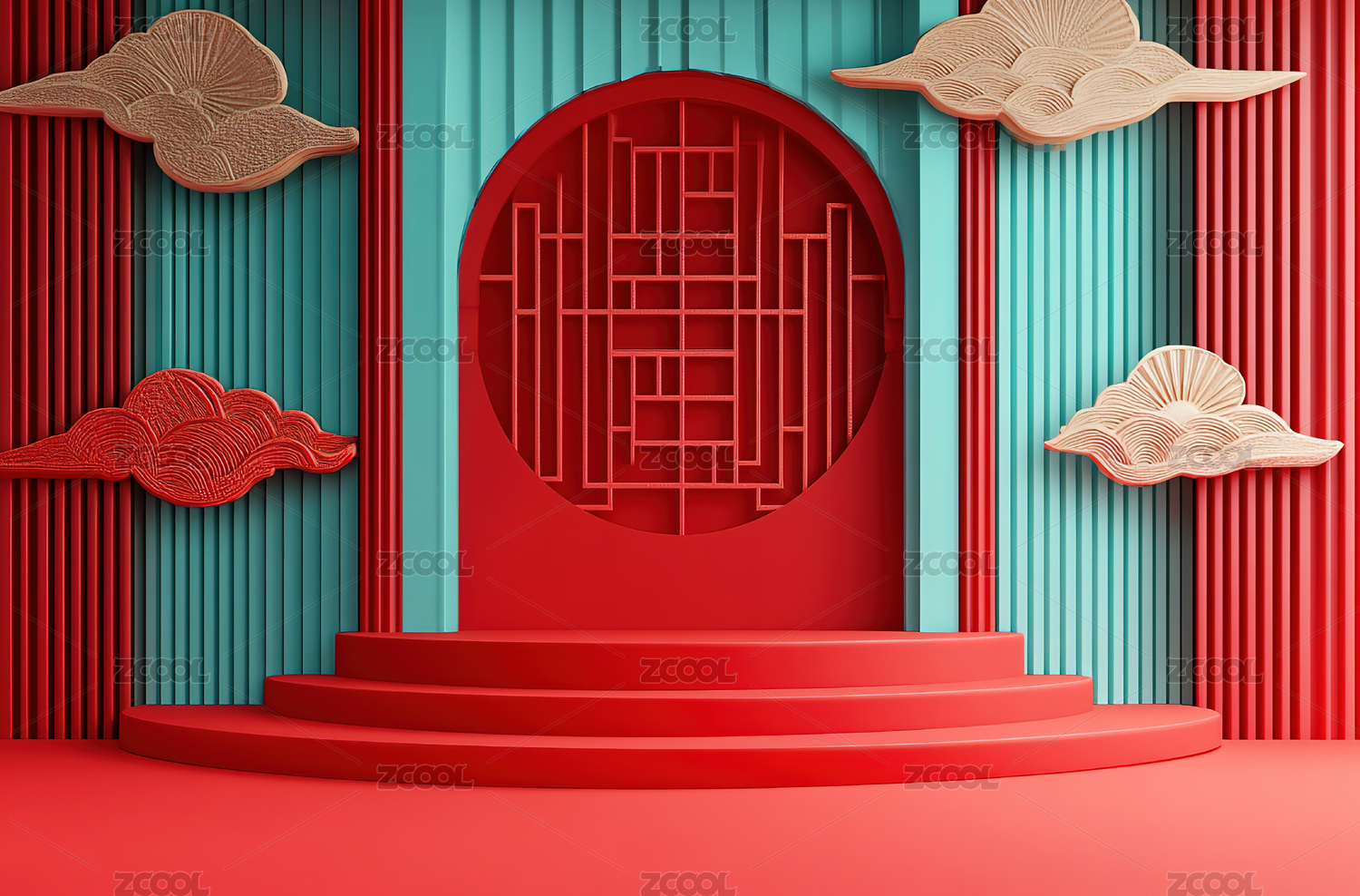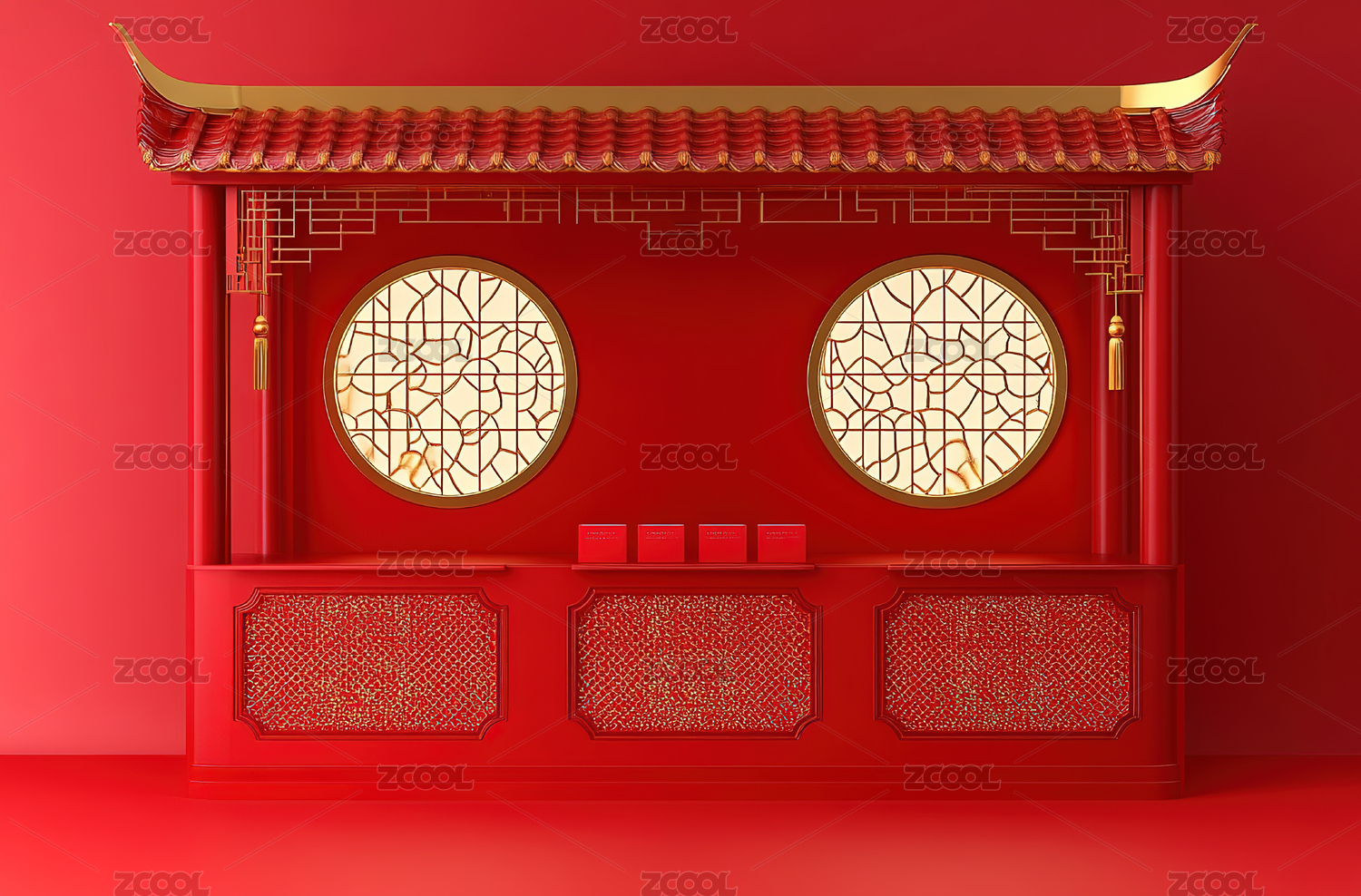 3d,东方,中国风,亚洲,产品展示,亭子,传统,光影,几何,创意