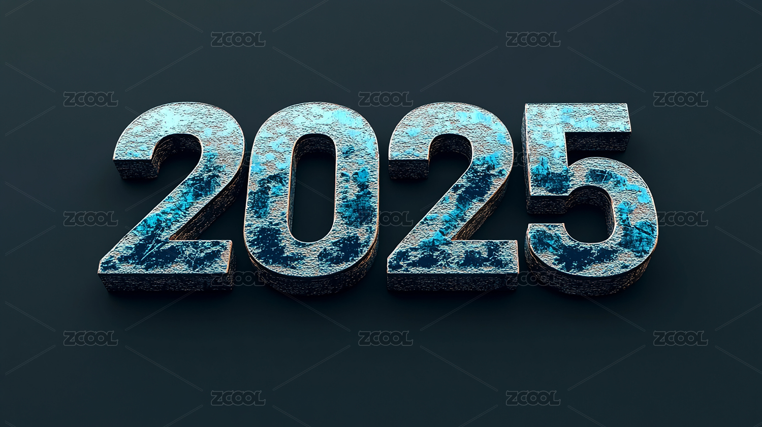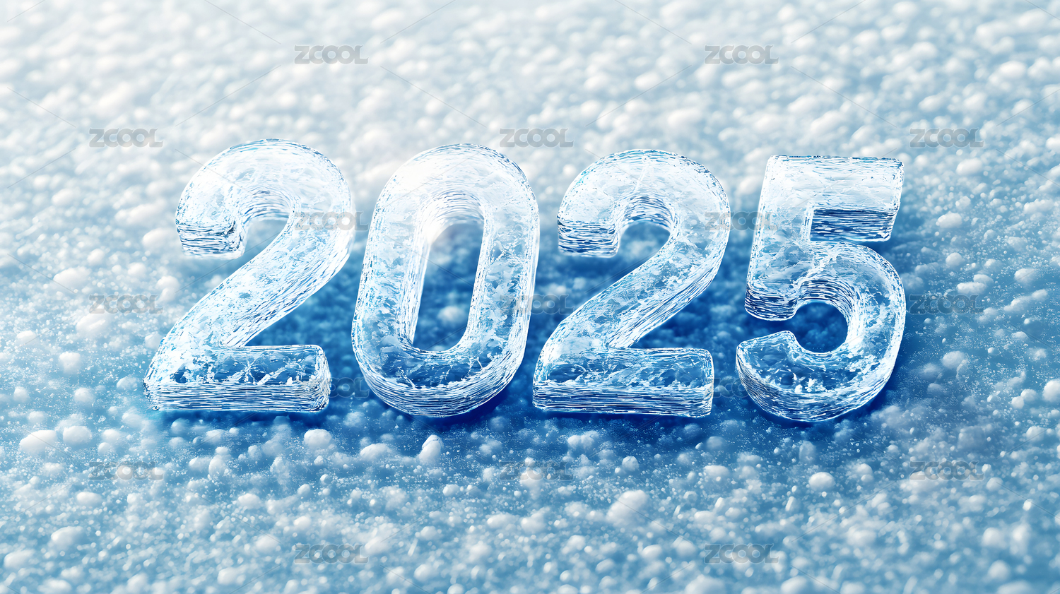 2025,数字,3D,立体,冰,冰块,冰裂,背景