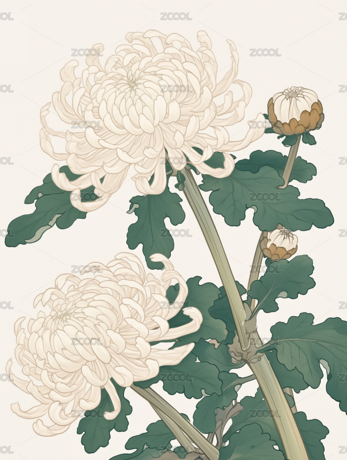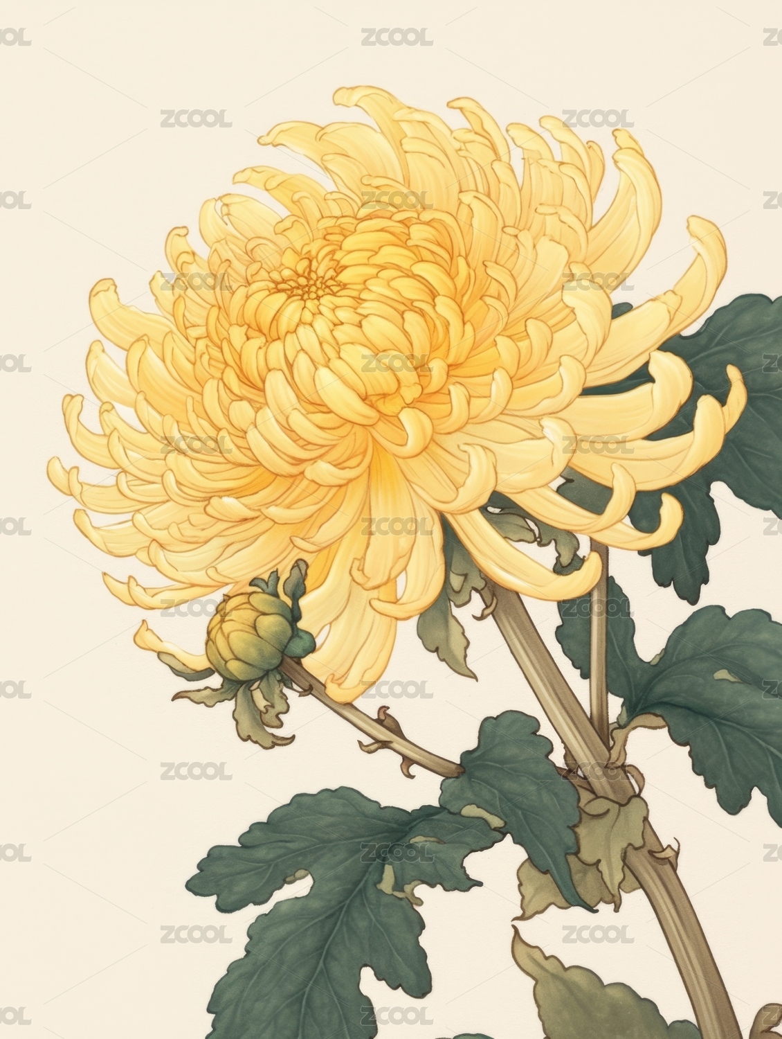 清廉,菊花,工笔,中国画,叶子,花朵,花头