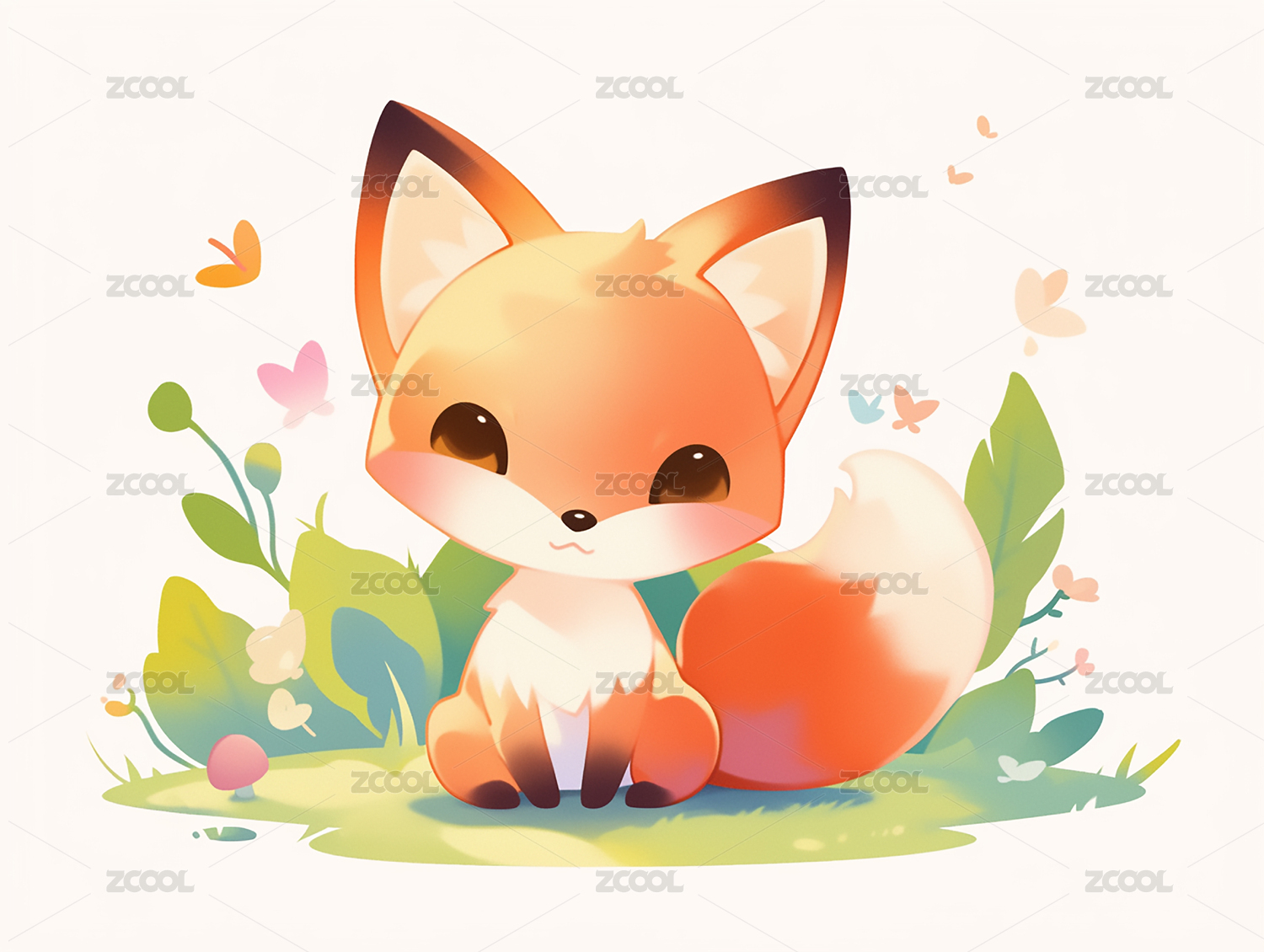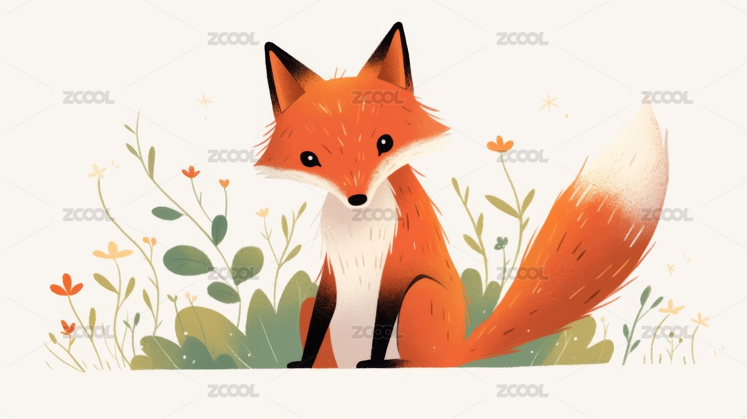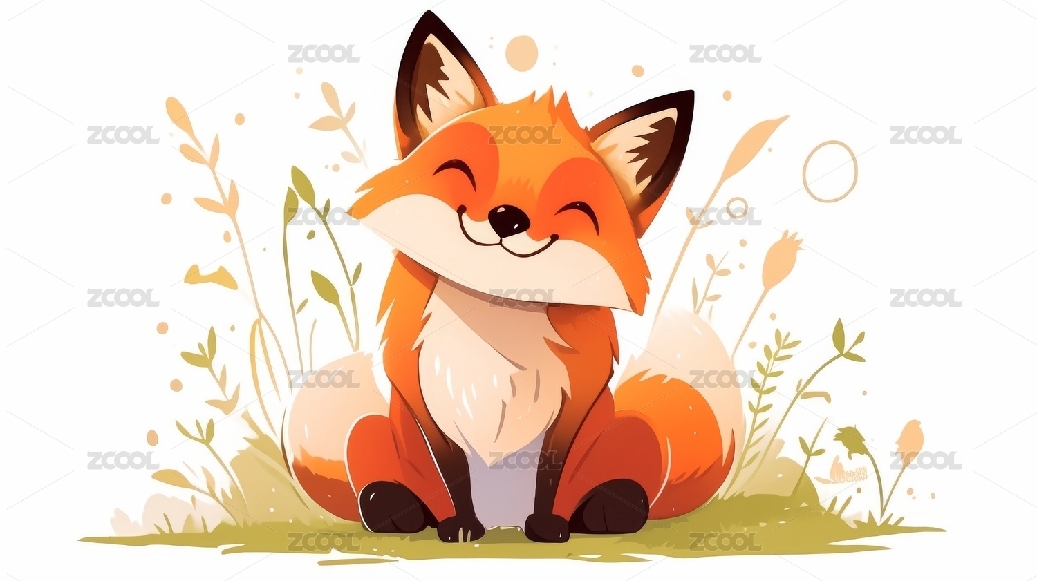 狐狸,卡通,动物,动物园,插画,水彩画,儿童画
