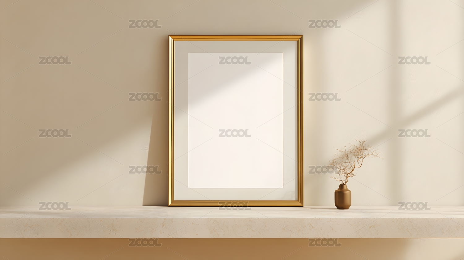 简约相框书桌台灯纯色背景商业广告海报壁纸