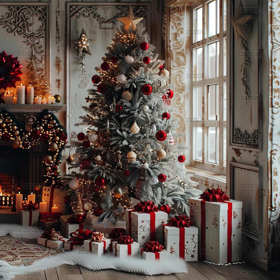 圣诞节超精致麋鹿礼盒圣诞树温馨插画场景