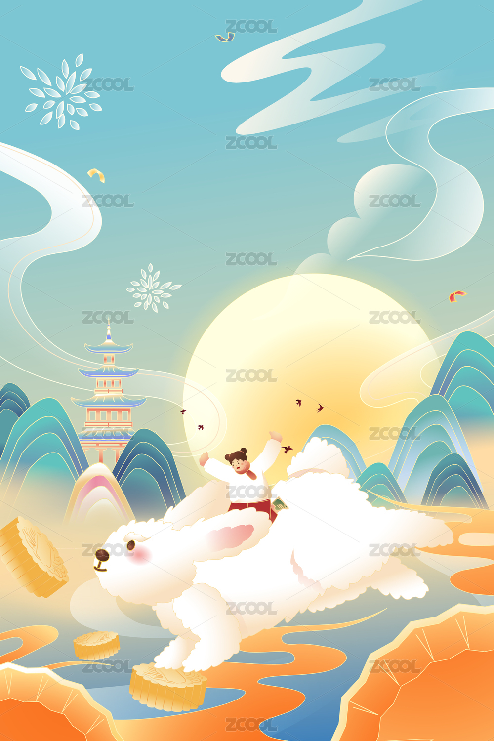 HEMAF2022,中秋节,中秋,传统纹理,潮流,国潮,中国风,创意插画,黄色,绿色