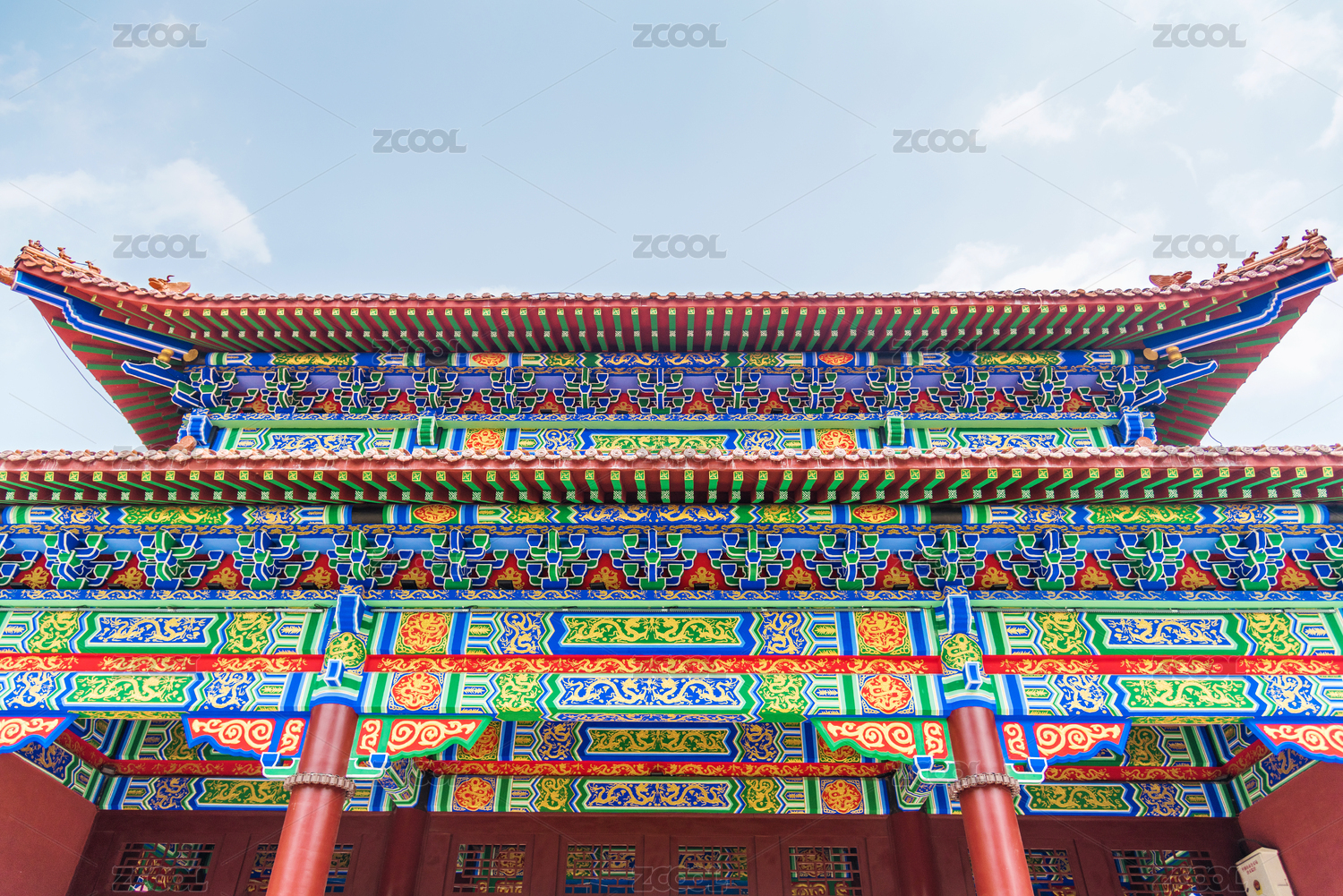 中式,建筑,建筑物,门楼,宫殿,彩绘,斑斓,色彩,明清风格,屋檐