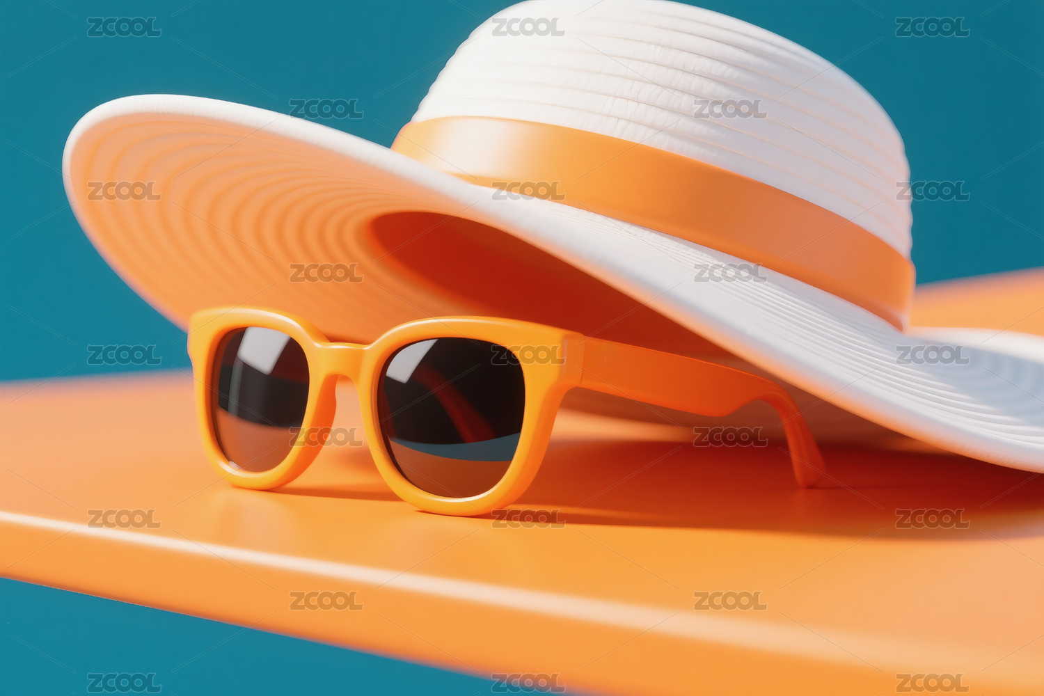 青底上围绕着墨镜耳机摆放的小海螺和小贝壳