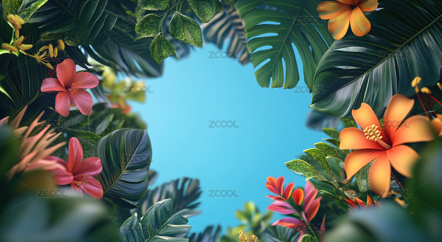 热带花卉与绿叶
