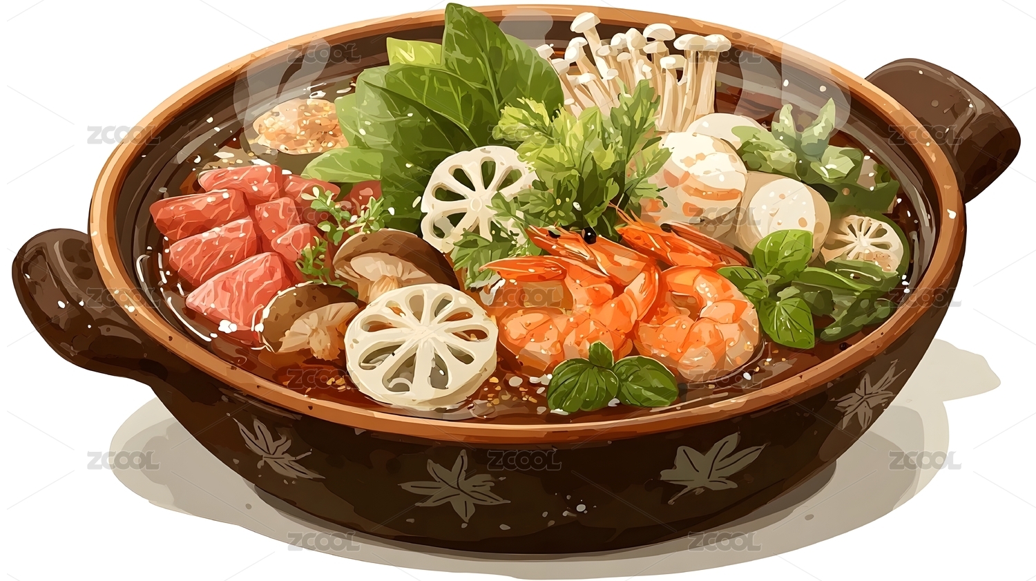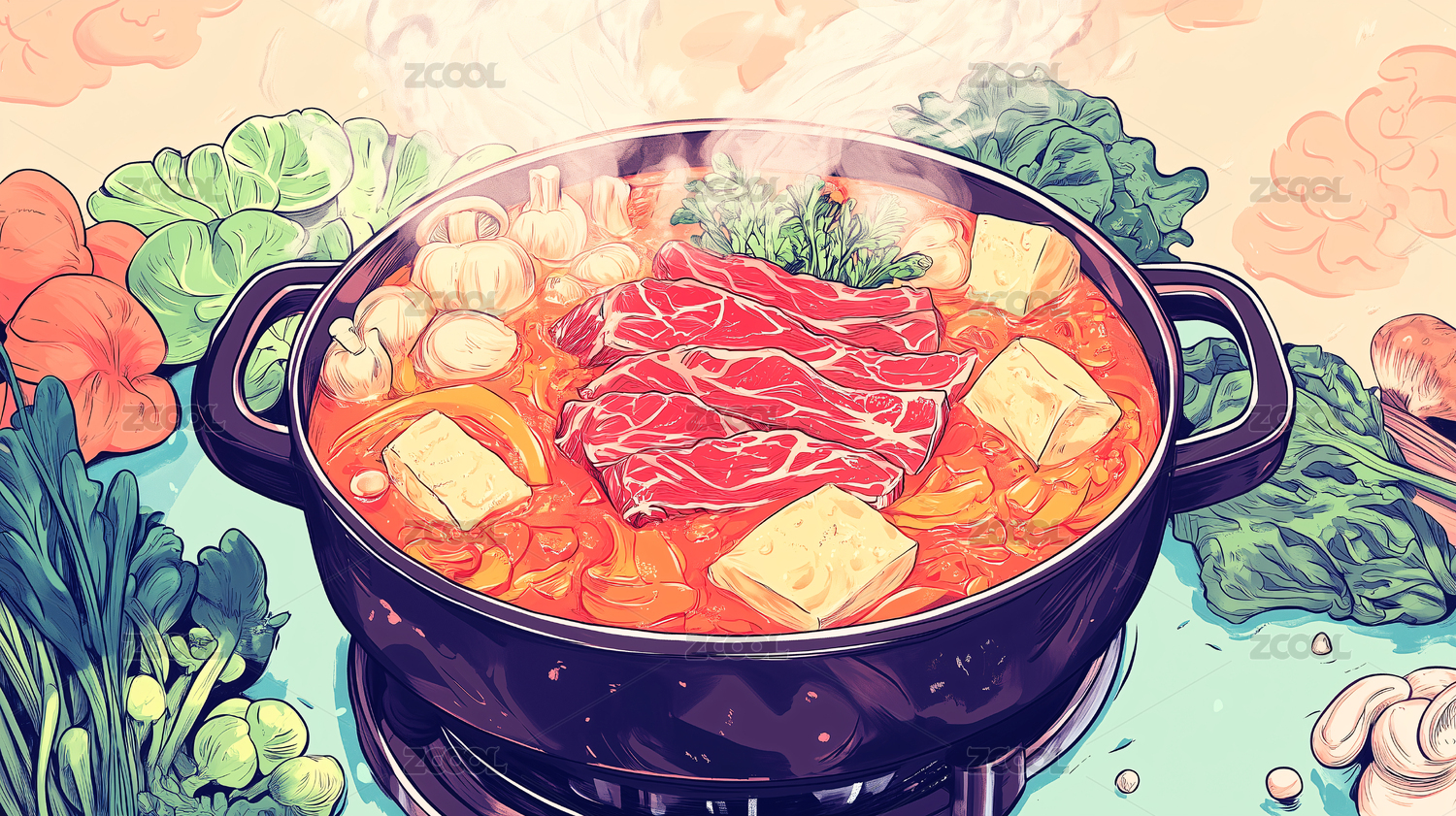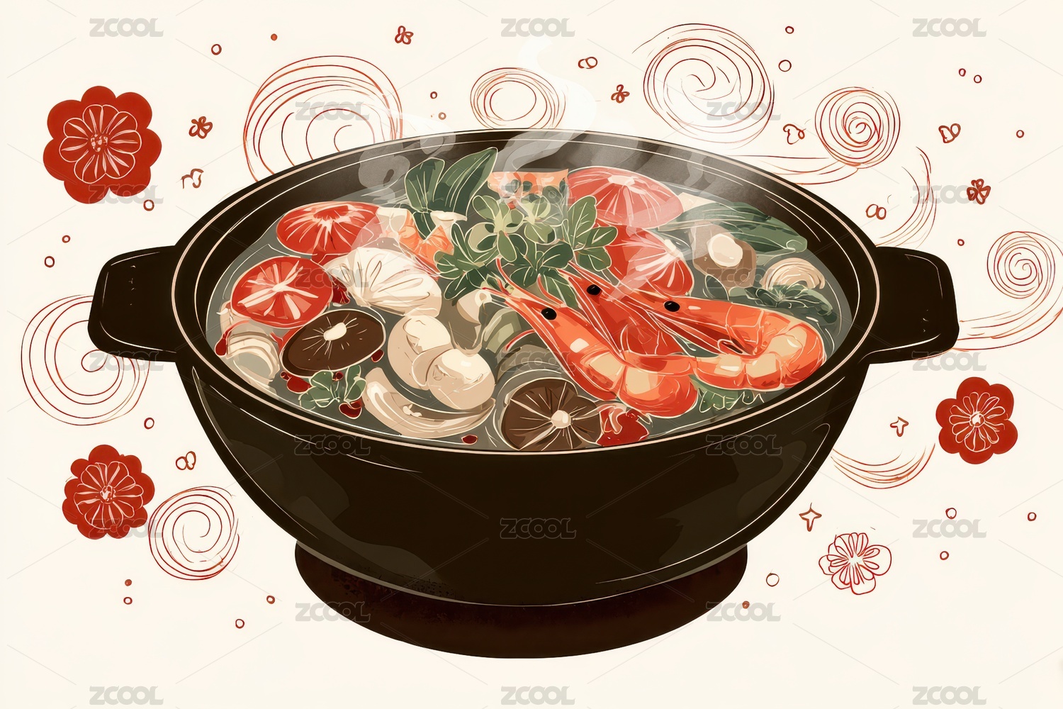 中式,火锅,插画,成都,麻辣,聚餐,食材,美味,中餐,热气