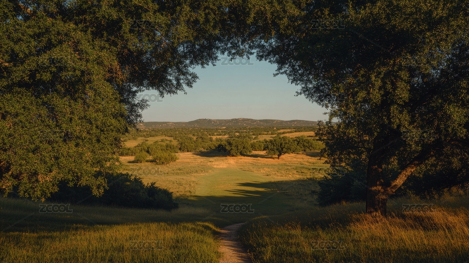 树荫下的田野风光