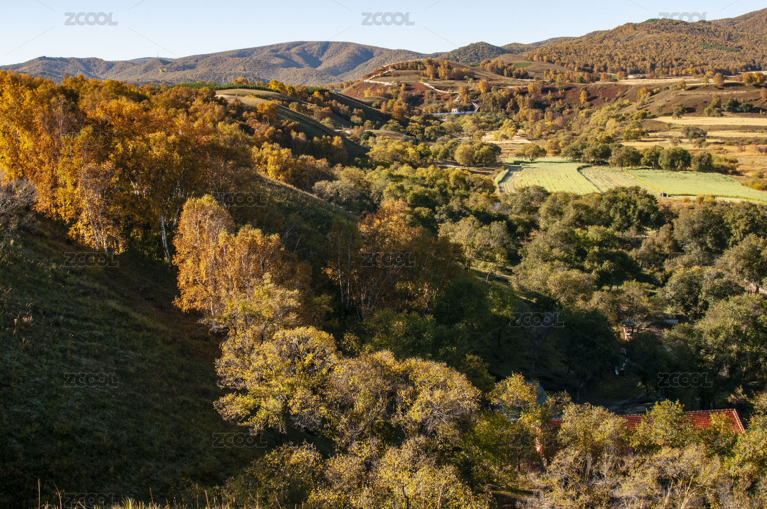 乌兰布统,蛤蟆坝,秋景,秋色,秋季风光,秋天,晴天,阳光,光线,树林