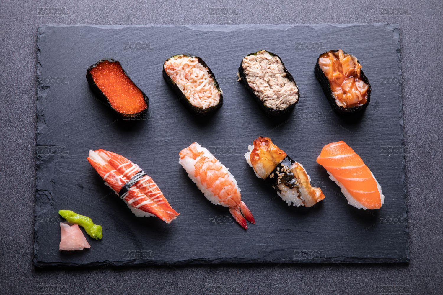 三文鱼,刺身,寿司,手卷,芥末,青芥末,石板,鳗鱼,烤鳗鱼,海苔